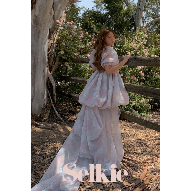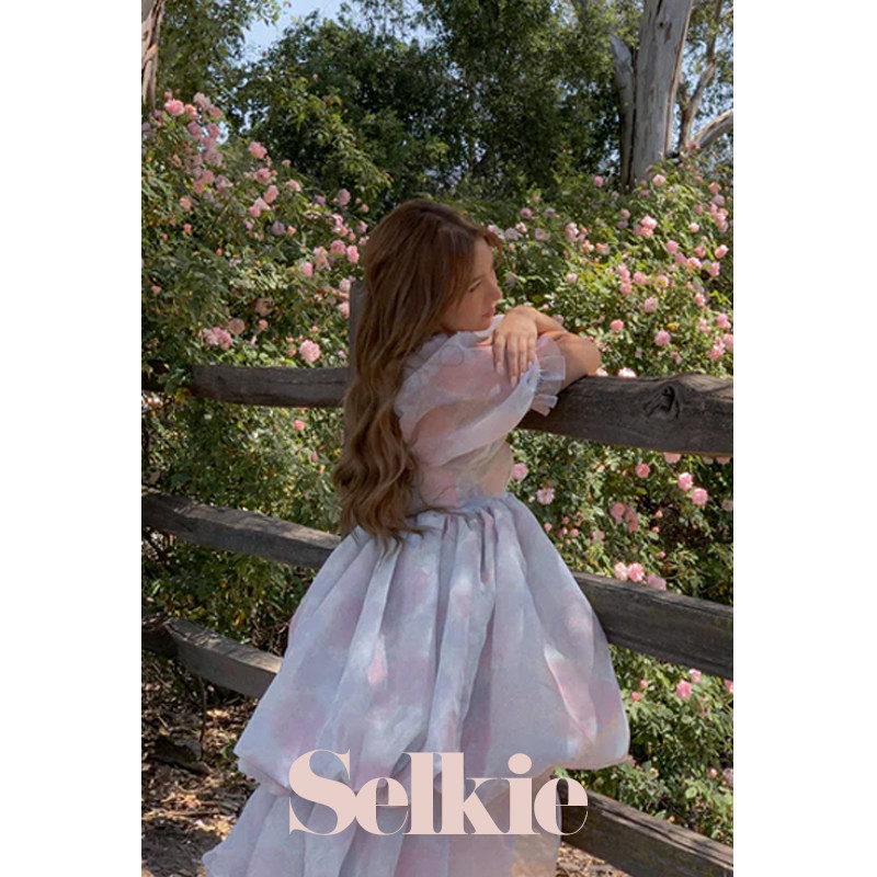 经典 婚纱拖尾Selkie 礼服 前短后长 collection 白底斑斓印花