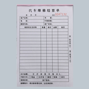 汽车维修结算单服务维修清单车辆修理单报价单保养记录单定做 包邮