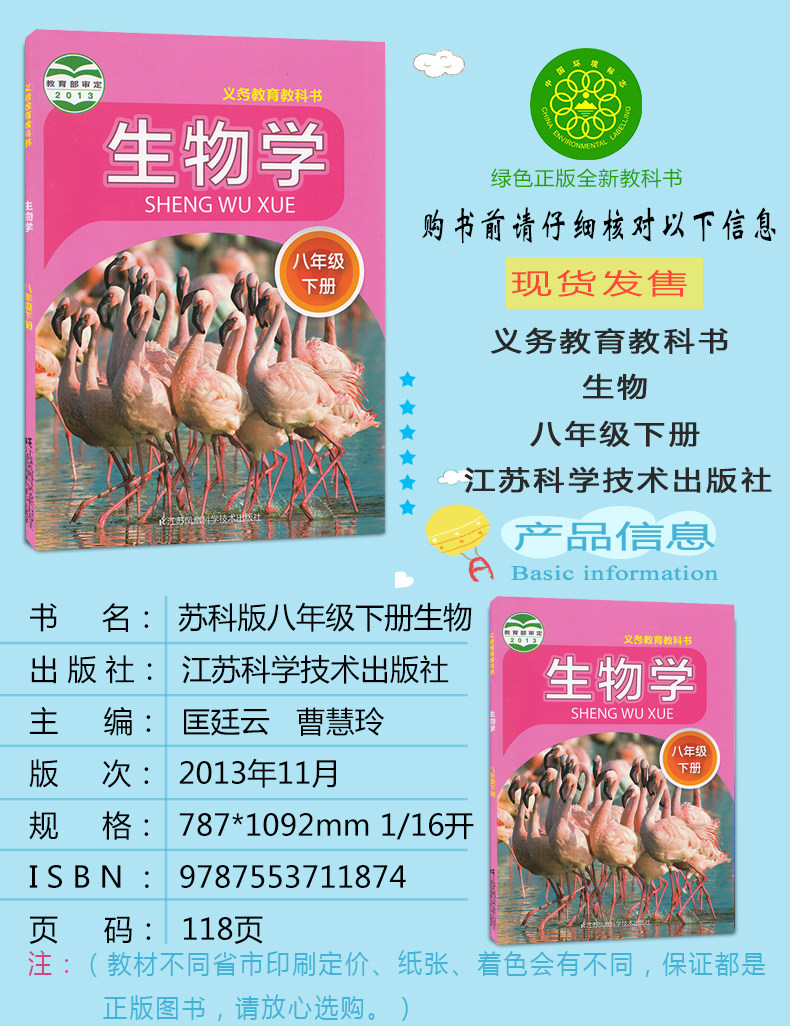 江苏科学技术出版 八年级生物下册课本教材学生用书 社初二生物下册义务教育教科书 2022第二学期八年级下册生物书苏科版 正版