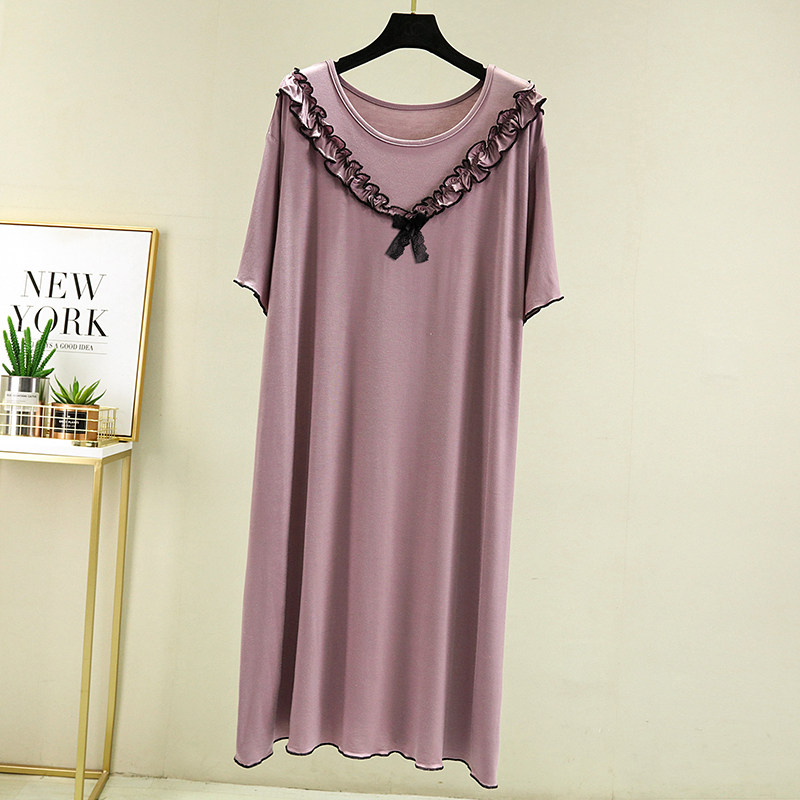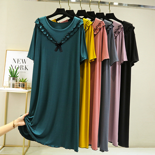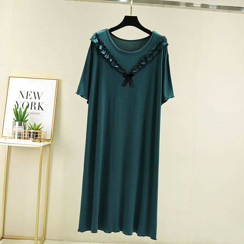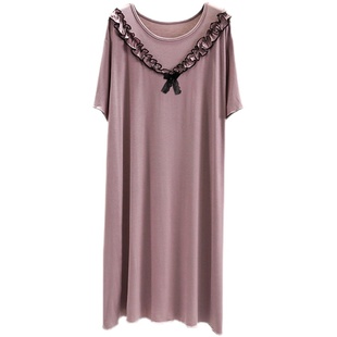 莫代尔连衣裙休闲家居睡裙 裙子中长款 蕾丝木耳边睡衣女夏薄款 短袖