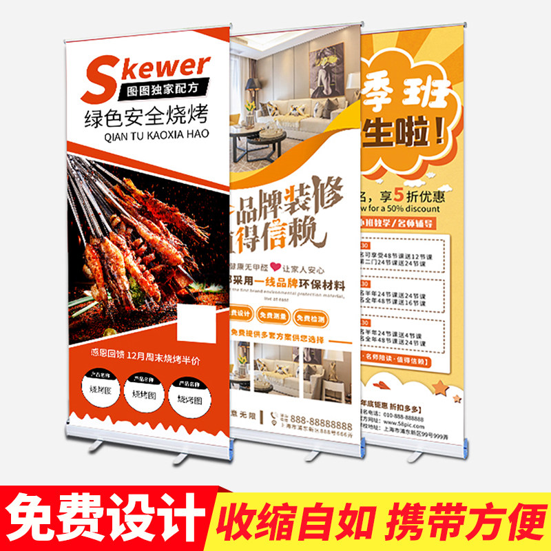 易拉宝x展示架立式 伸缩折叠生日海报架设计制作广告牌定做 落地式