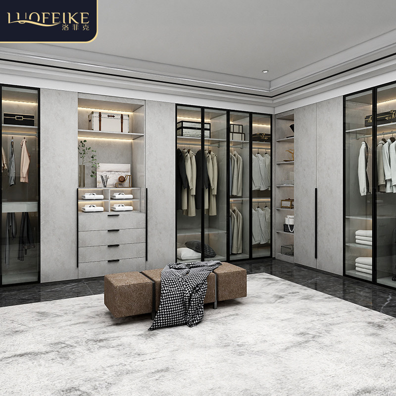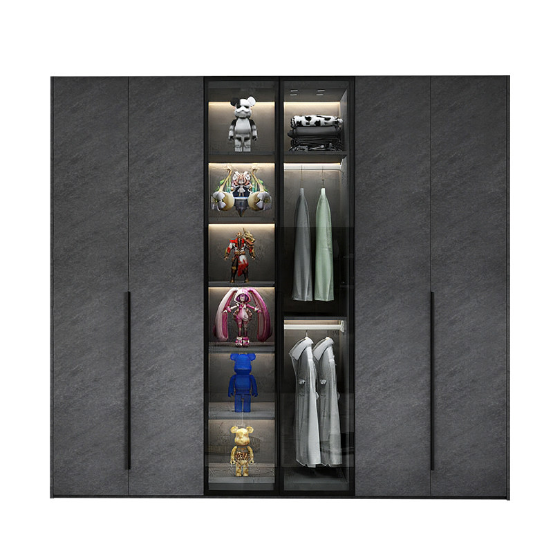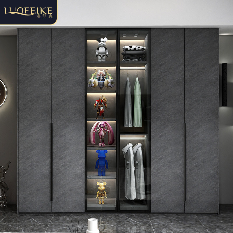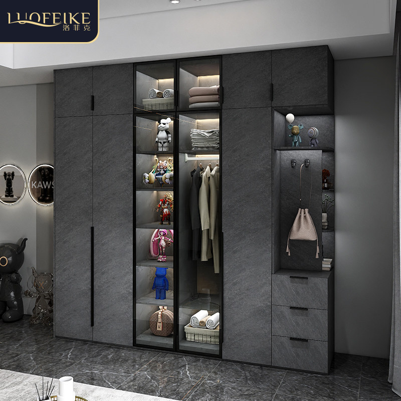 现代简约玻璃门衣柜梳妆台一体组合轻奢极简家用卧室整体实木衣橱