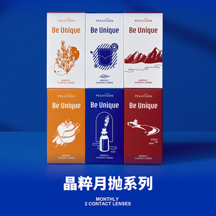 彩色近视隐形眼镜女大小直径自然 晶硕晶粹美瞳月抛2片装 自营