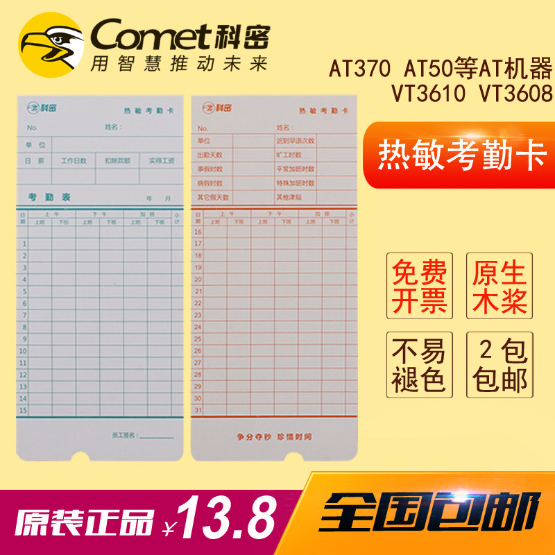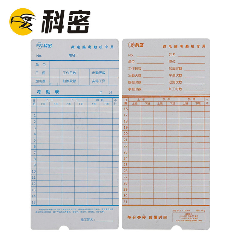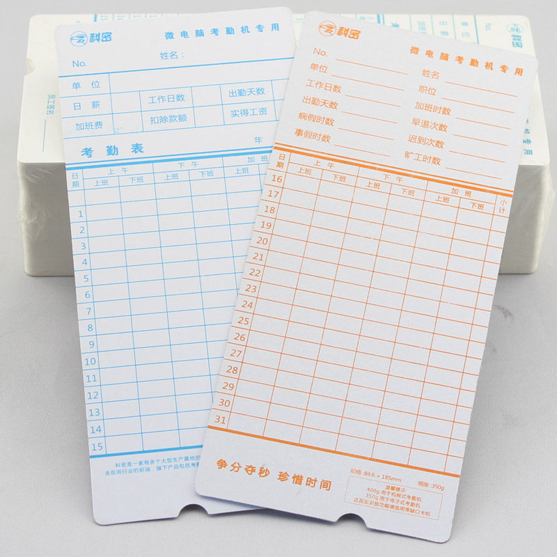 热敏 考勤纸卡 齐心爱宝 微电脑打卡机通用考勤白卡纸 科密考勤卡