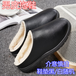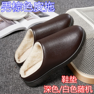 女面防水厚底拖鞋 拖鞋 保暖厚底家居室内棉拖鞋 男冬季 加绒皮拖鞋