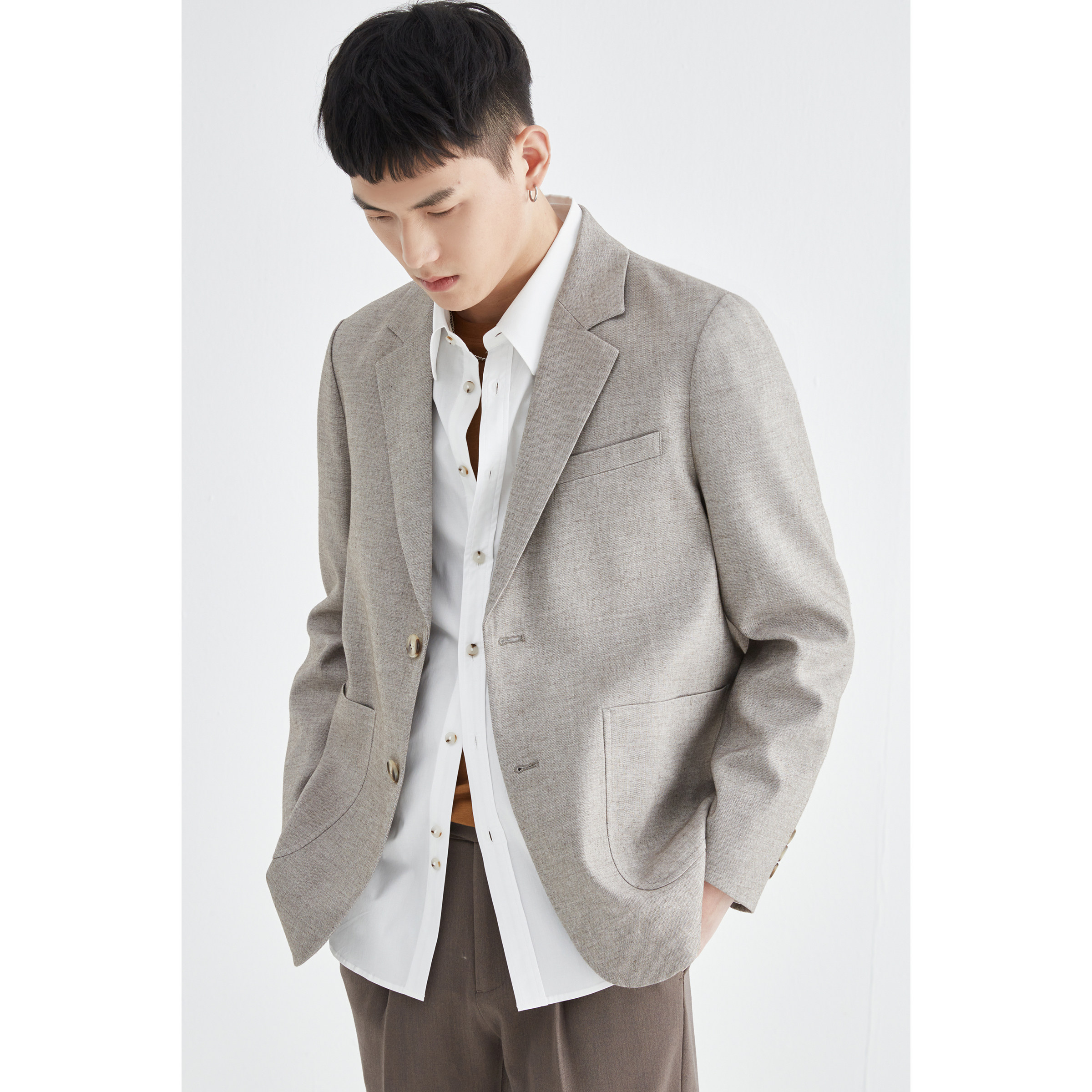 男士 春秋季 潮流亚麻西服套装 男宽松韩版 休闲单西外套 高级感小西装