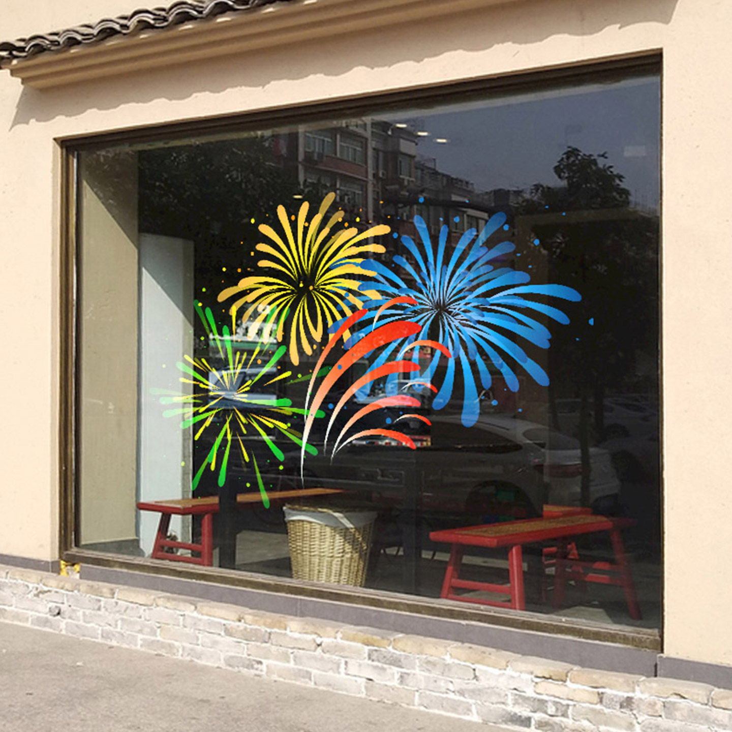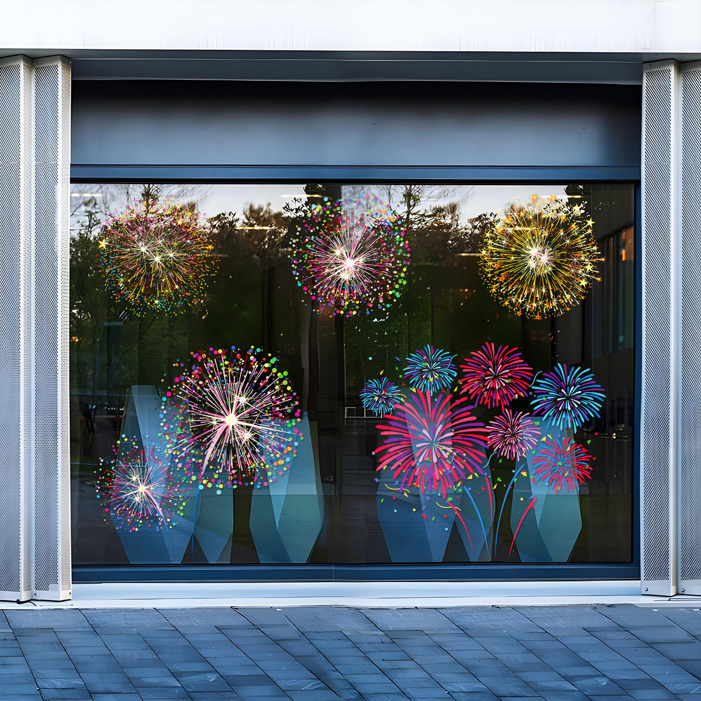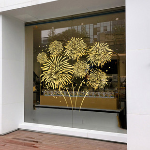 新年烟花玻璃贴纸静电喷水橱窗贴膜元 素展厅酒店布置 旦金色喜庆元