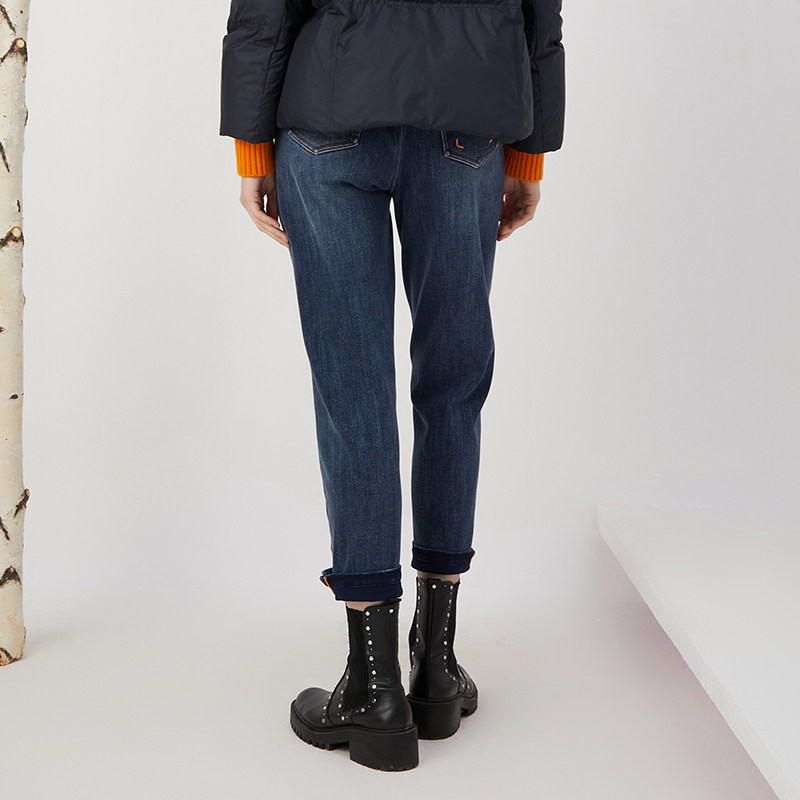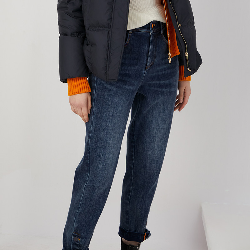 高腰加厚弹力显瘦铅笔小脚裤 复古蓝加绒紧身牛仔裤 女2025秋冬新款