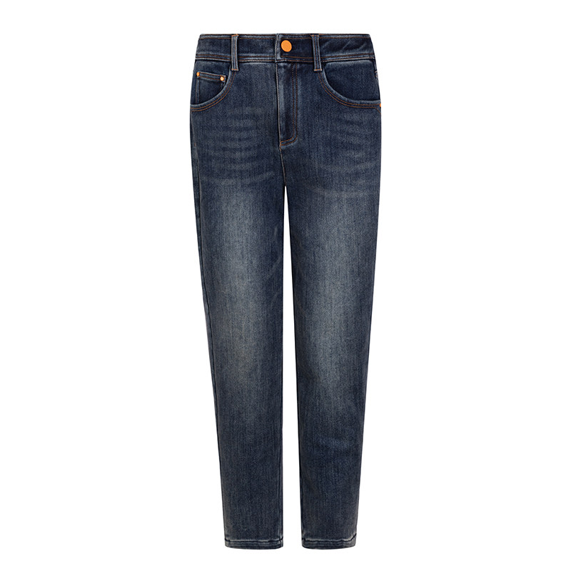 逸阳高腰深蓝不掉色牛仔直筒裤 女加绒2025秋冬加厚宽松显瘦烟管裤