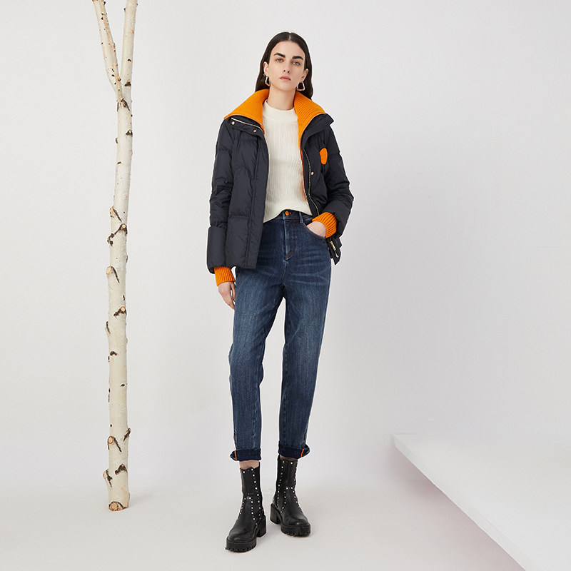 特别菠萝纹纹理微宽松锥形牛仔长裤 搭配 适合四季 几立