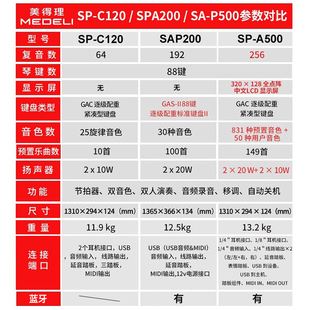 美得理电钢琴SPC120初学者SAP200便携SP A500多功能专业88键重锤