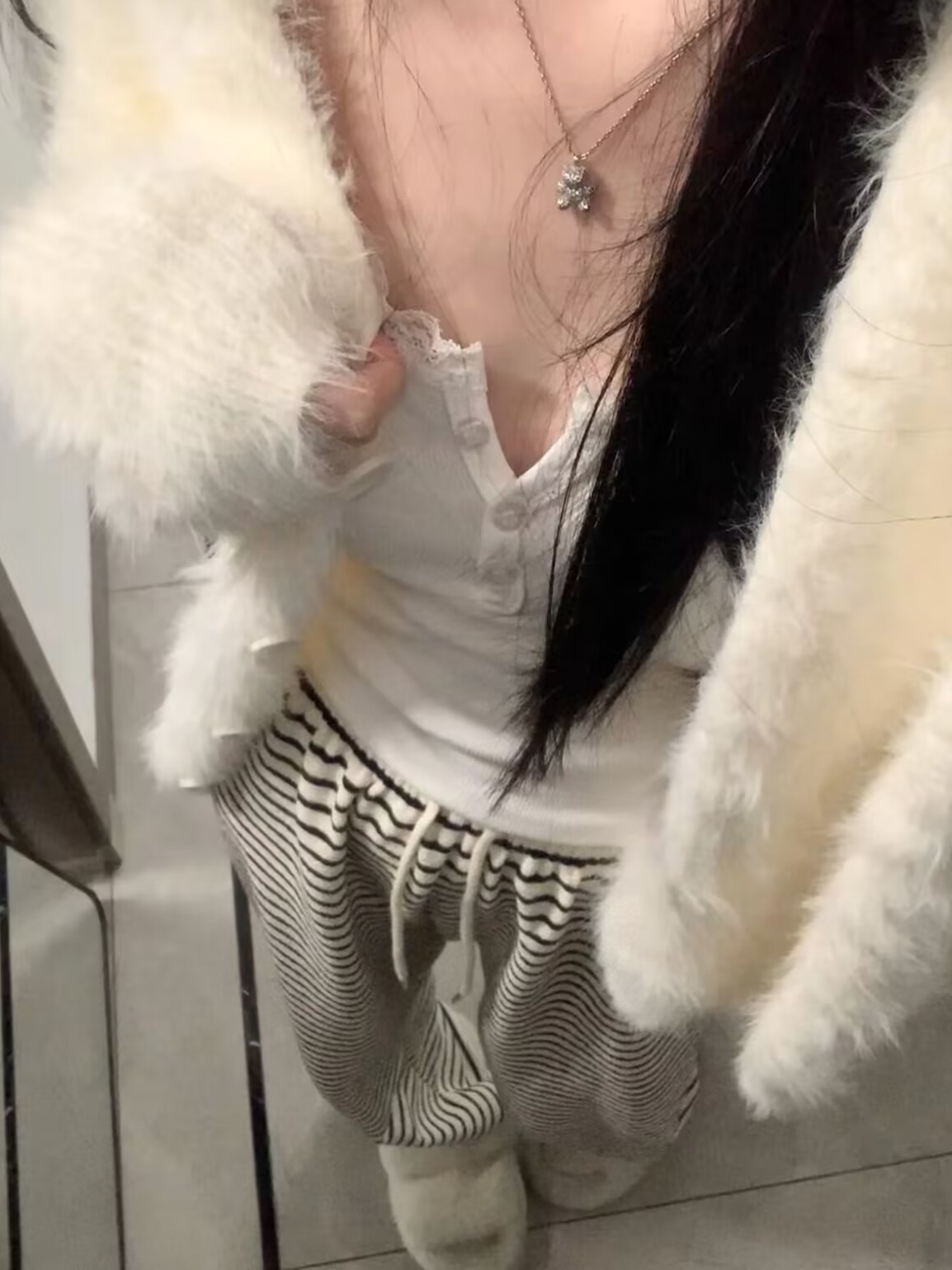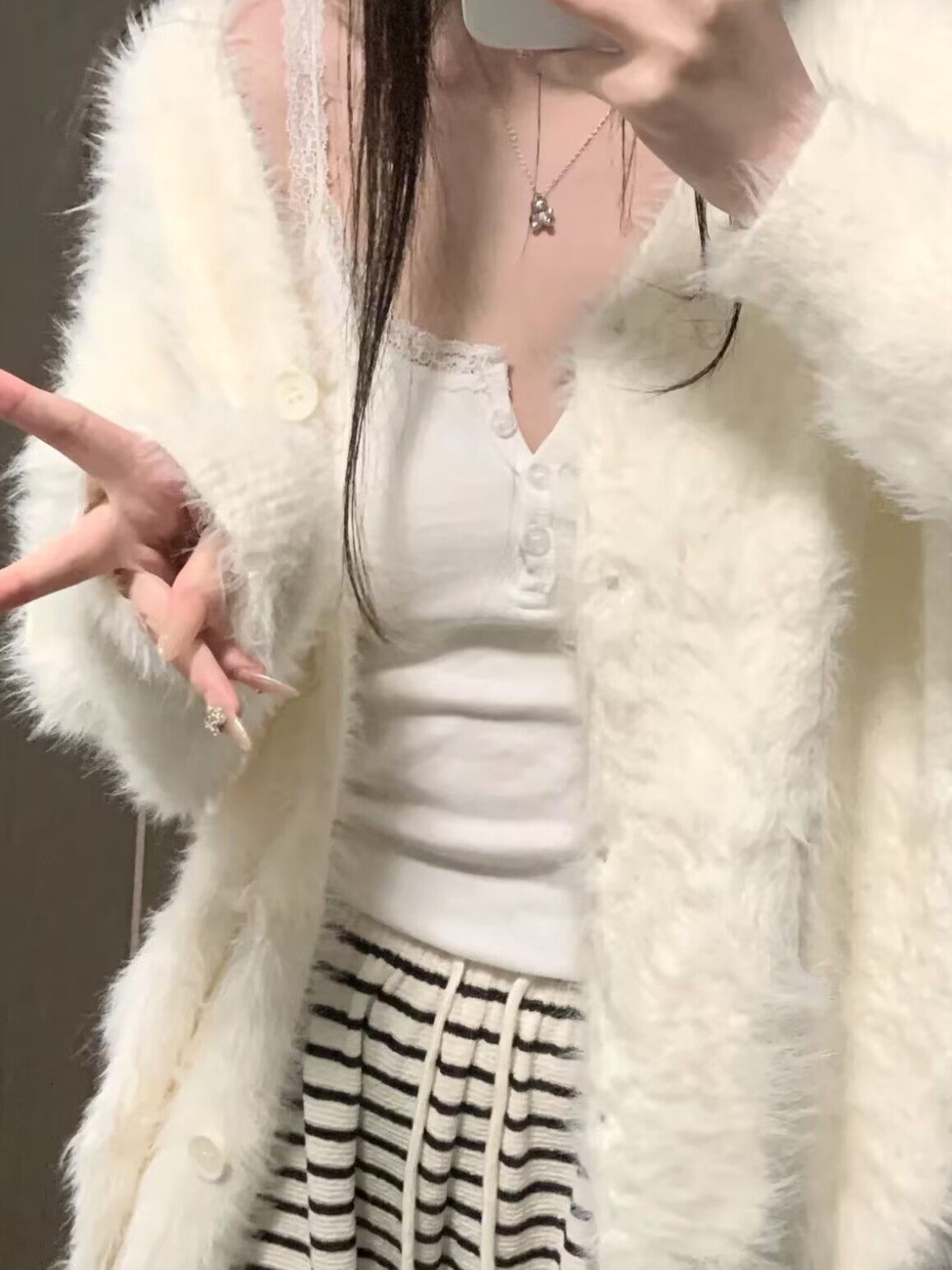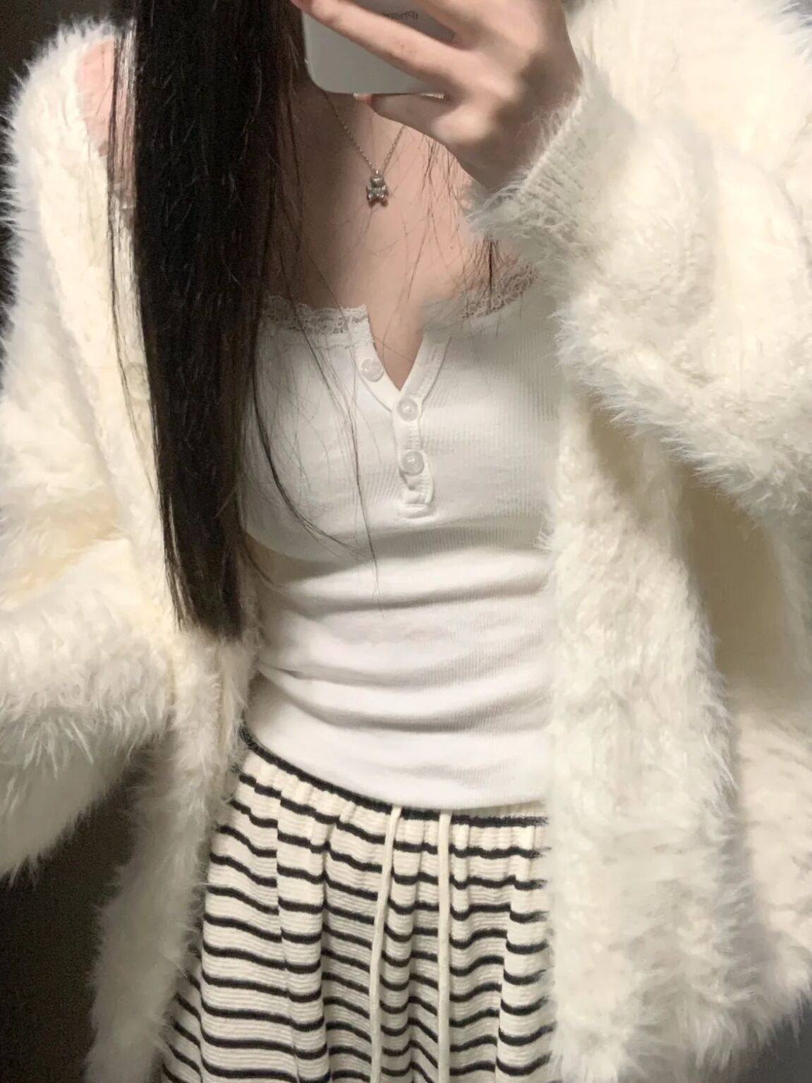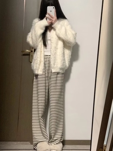 宽松针织衫 高级感 新款 外套女2025秋装 慵懒风白色水貂绒毛衣开衫