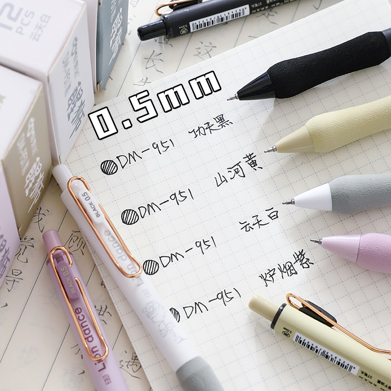 东米按动中性笔精工刷题笔st笔头学生考试专用黑色高颜值速干顺滑碳素笔黑笔芯圆珠笔签字笔红笔开学文具用品