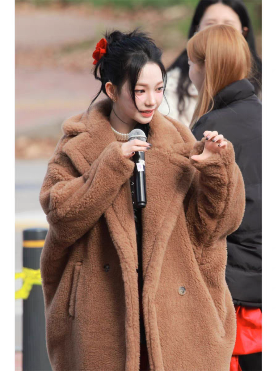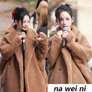 赵露思明星同款 皮毛一体毛绒皮草外套 M家泰迪熊大衣女秋冬中长款