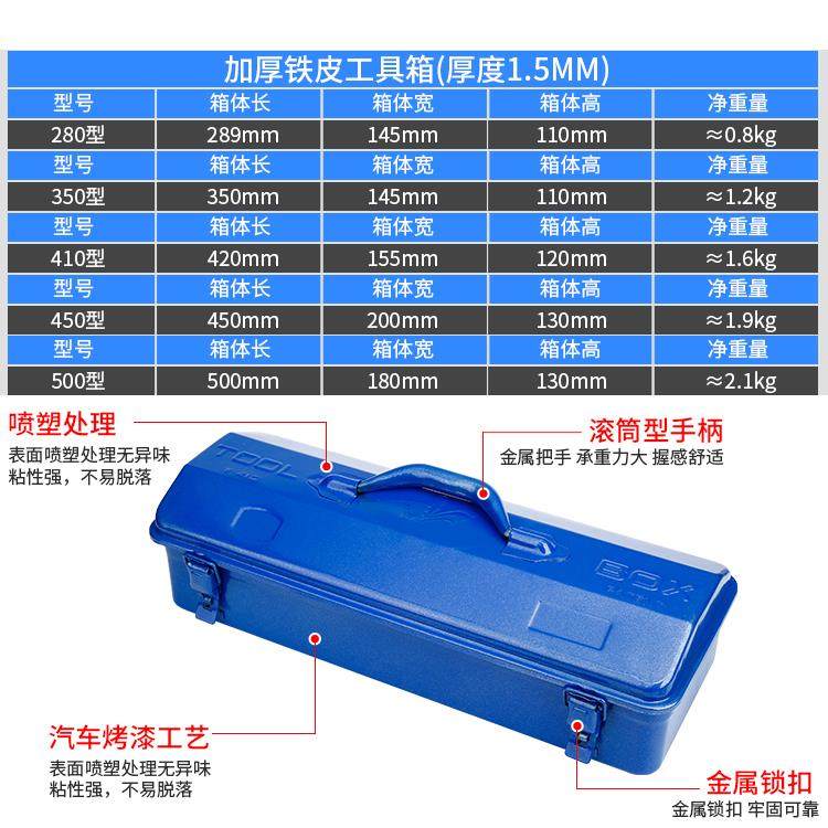 手提式 五金工具箱储物车载家用收纳盒多功能汽修大小号铁皮空盒子