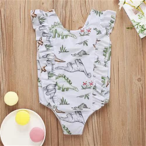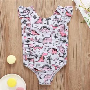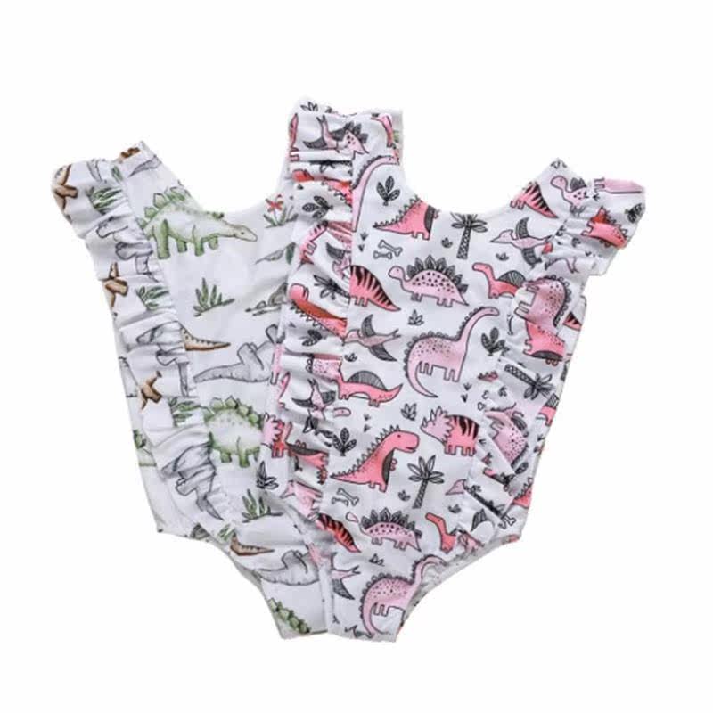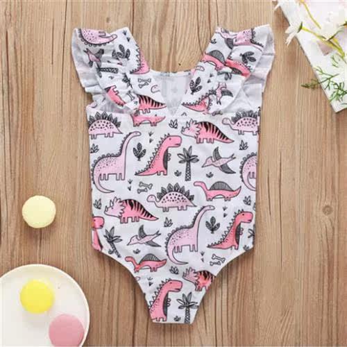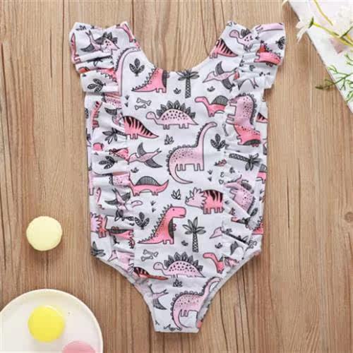 Dinosaur Girls Printed ins Piece Green One Swimsu Pink