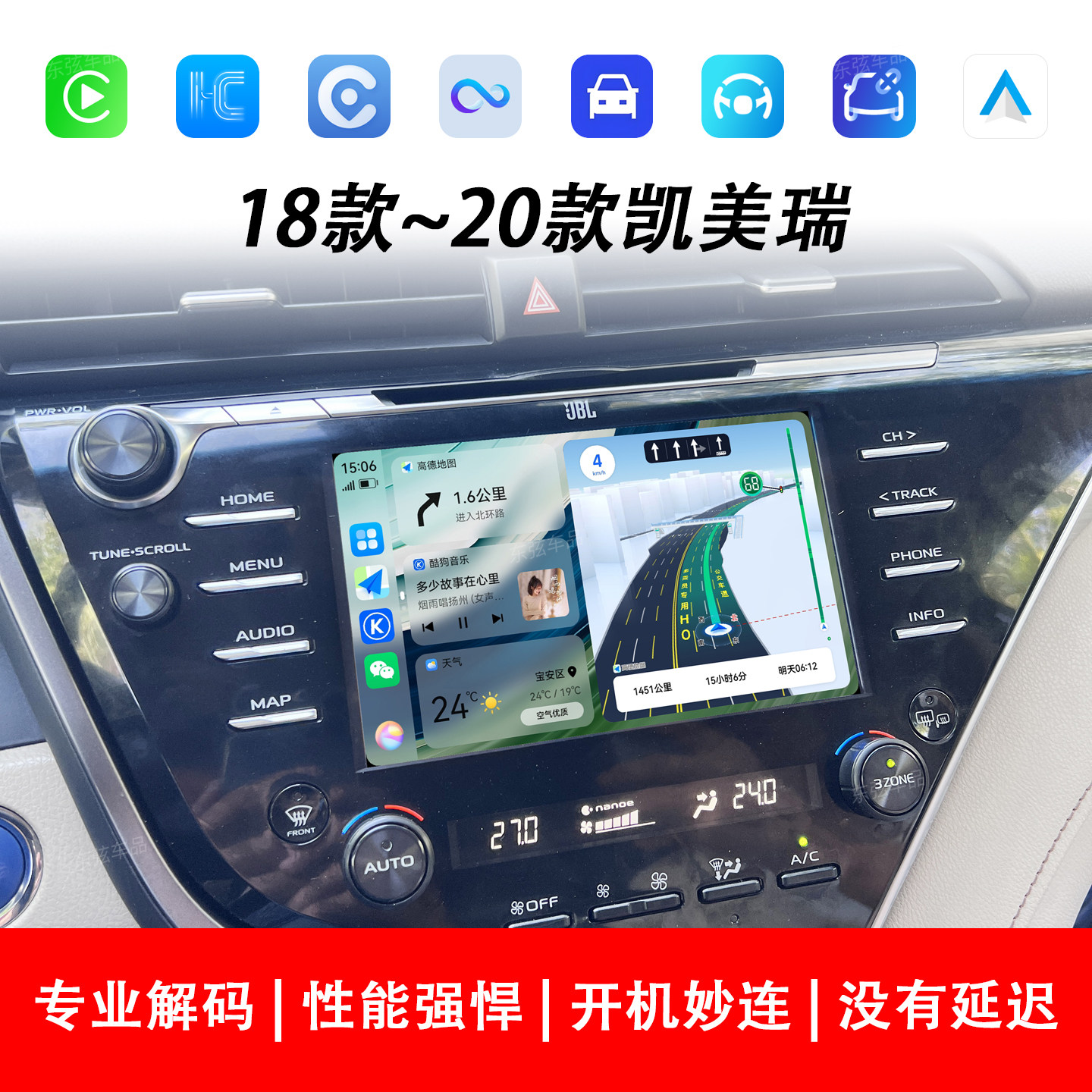 适用于丰田18款 凯美瑞无线苹果CarPlay华为HiCar手机互联模块导航