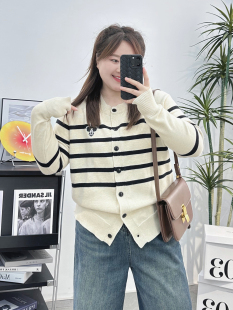 大码 内搭外套上衣女秋冬胖mm显瘦遮肉慵懒风复古条纹毛衣针织开衫