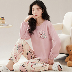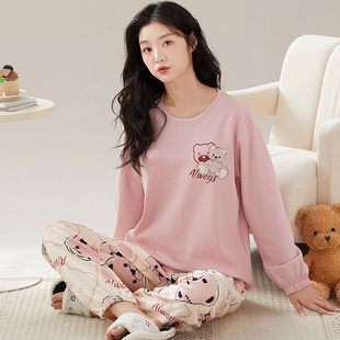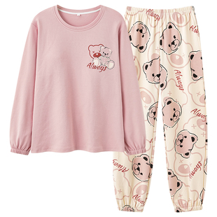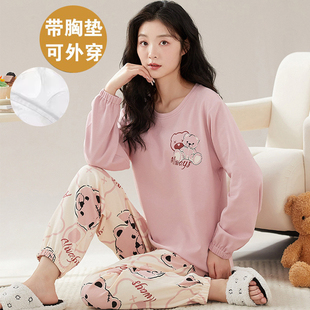 春秋季 冬夏款 学生可爱自带胸垫一体长袖 大码 家居服 套装 睡衣女薄款