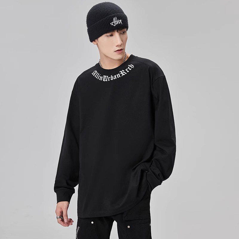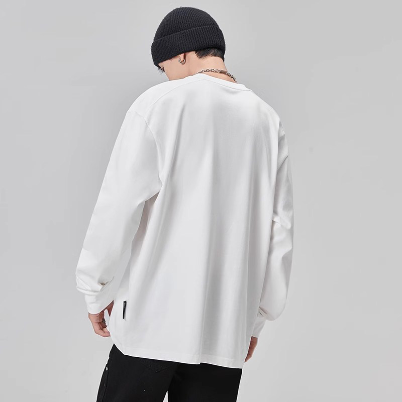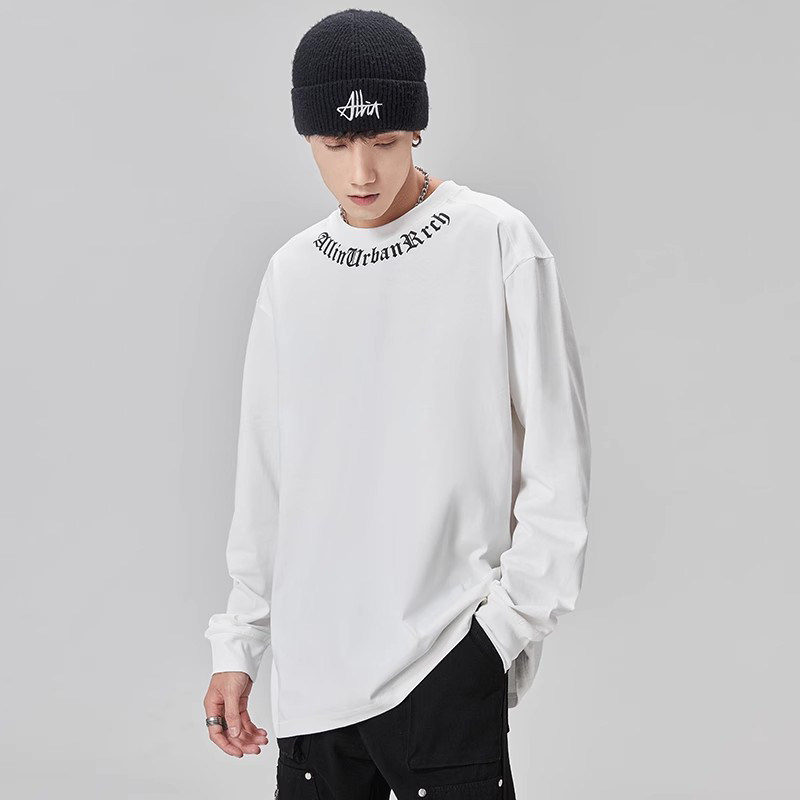 白色圆领打底衫 t恤男生春秋潮牌美式 宽松百搭字母上衣 长袖 ALLIN