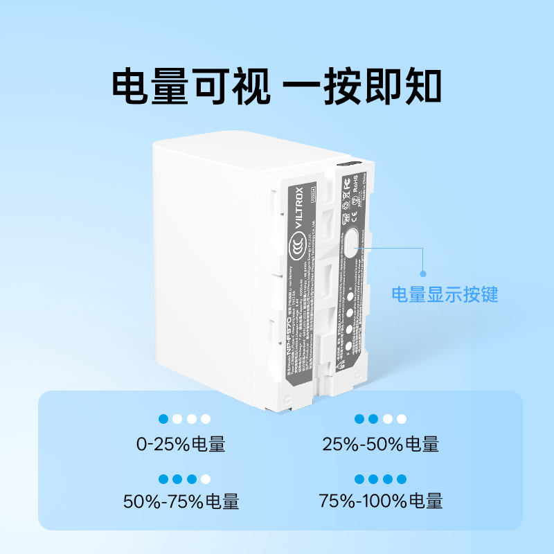 F750 F550 唯卓仕NP F970大容量锂电池监视器补光灯专用智能充电电池电量可视过冲过放保护 国家3C认证