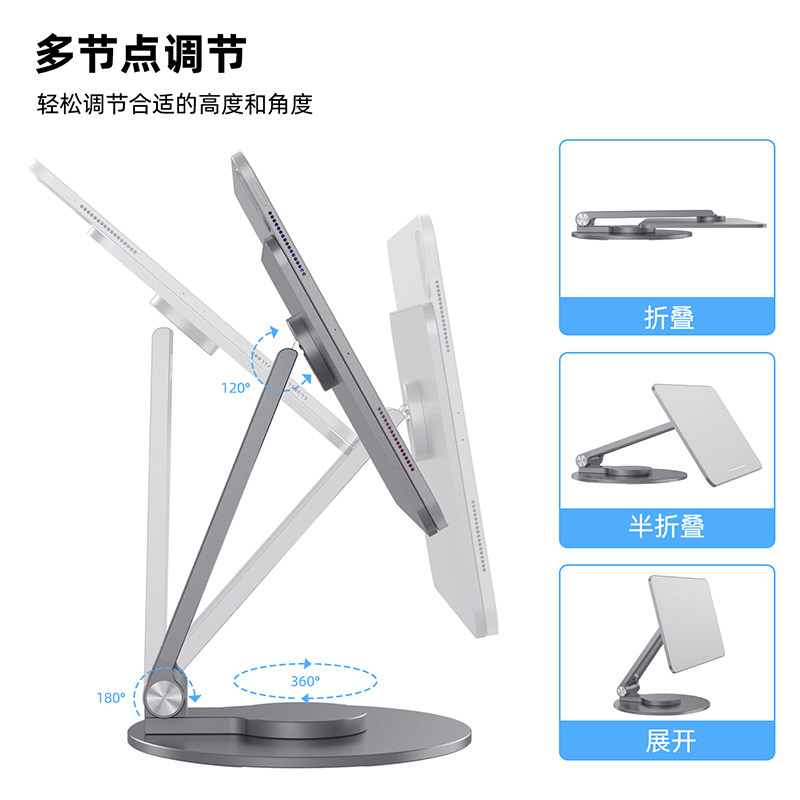 2025新款 手机支架桌面懒人平板电脑支撑架可旋转折叠手机架直播视频ipad支撑架子航空金属720旋转便携手机架