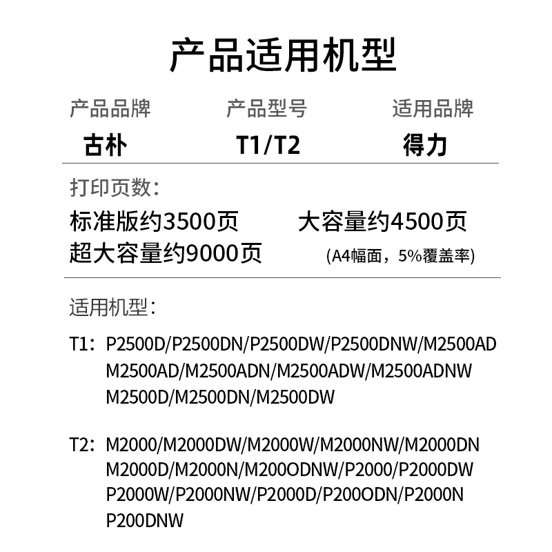 P2500ADW T2S碳粉盒M2020DW P2000墨粉P2020DW激光打印机碳粉 M2000DW适用得力M2500D硒鼓M2500ADW