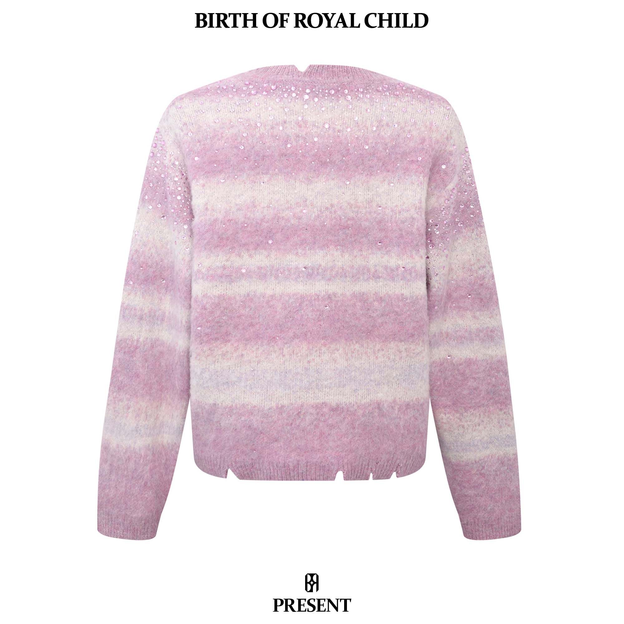 手工镶钻拼色毛衣男拼色条纹针织衫 BIRTH CHILD.BORC ROYAL
