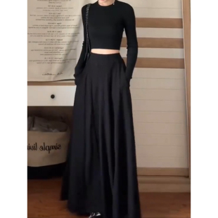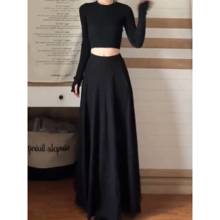 显瘦遮肚a字到脚踝半身超长裙子潮 黑色伯克利半裙女大码 春季 新款