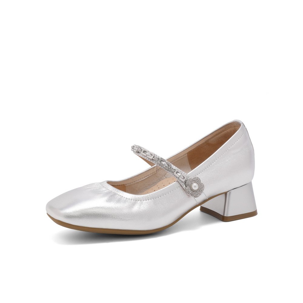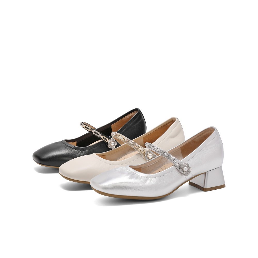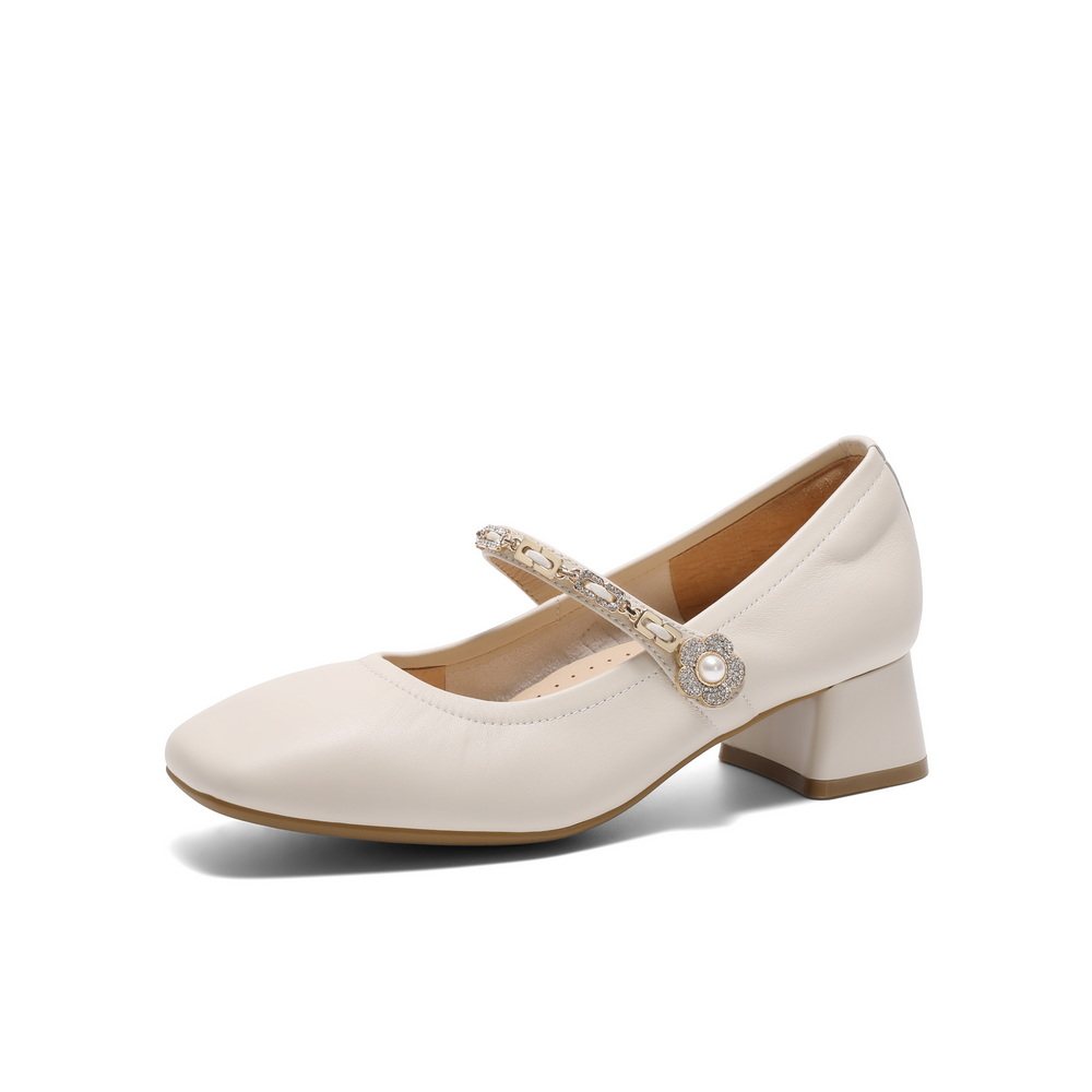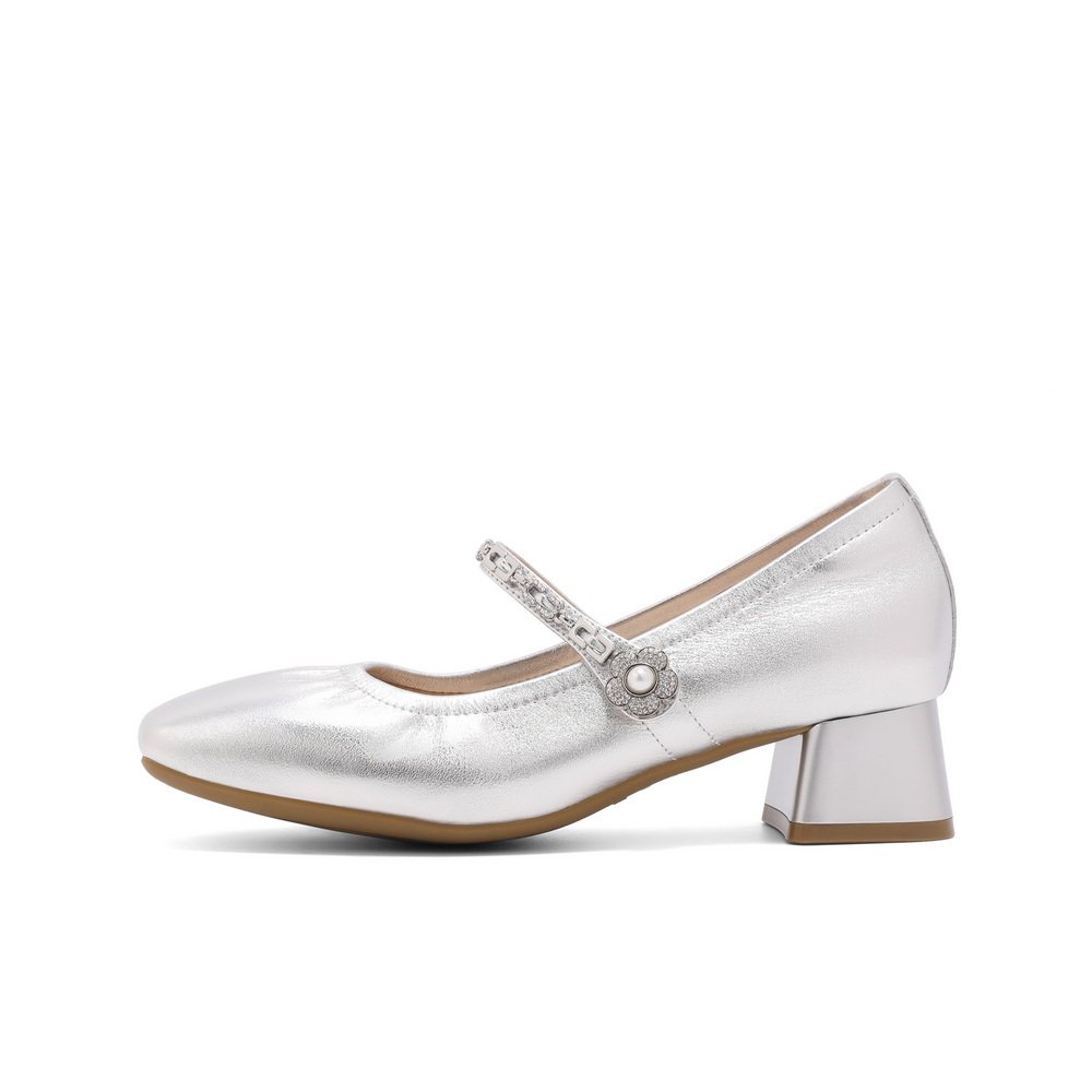 D4A1 百丽粗高跟玛丽珍鞋 浅口真皮单鞋 子2025春新款 D4A1DAQ5 女鞋
