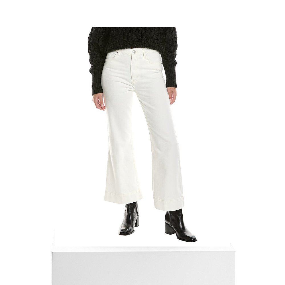 女高腰宽松显瘦弹力长裤 乔栈秋冬爆款 米白色加绒不贴腿微喇牛仔裤