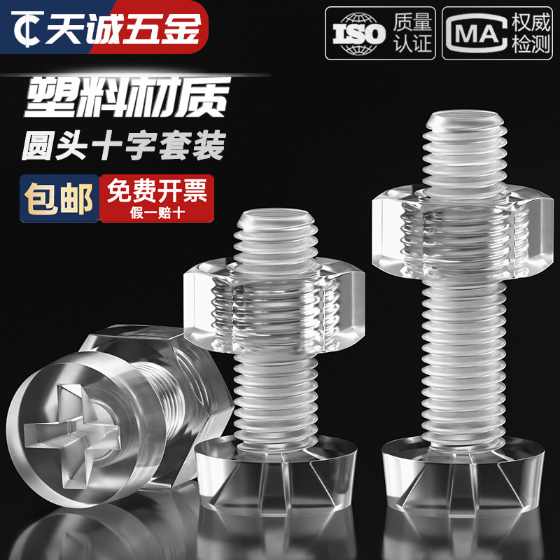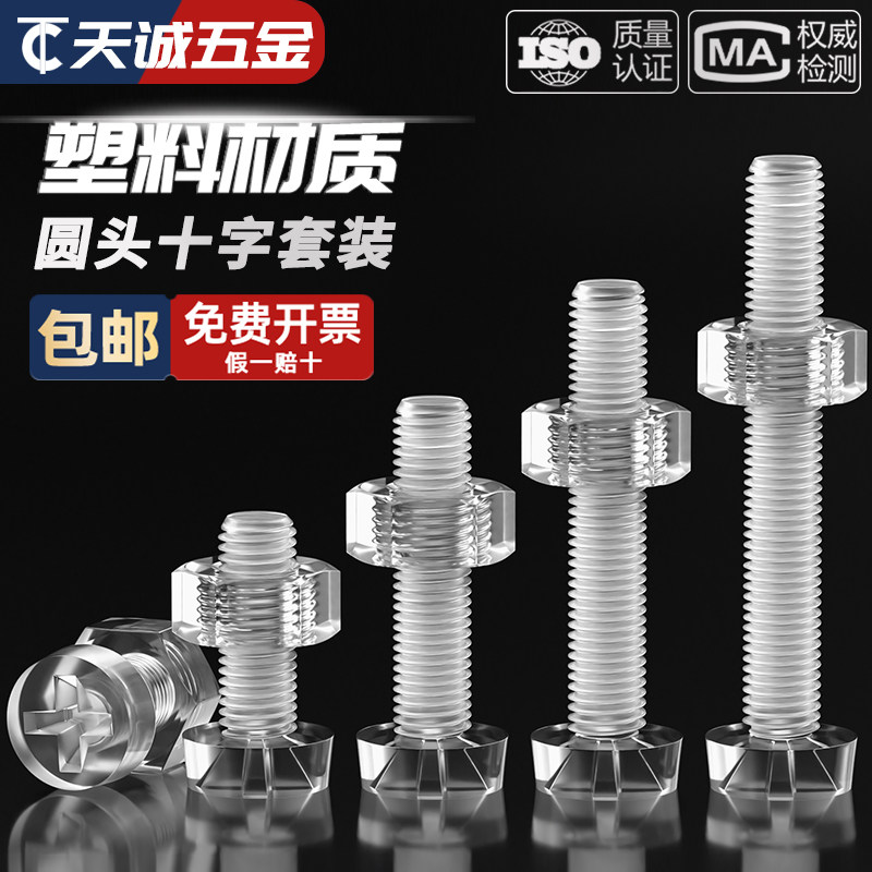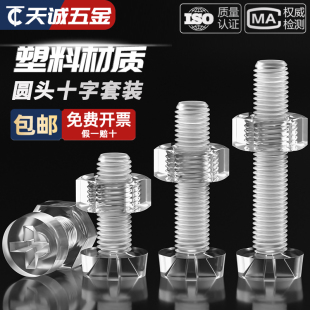 PC透明亚克力组合钉十字圆头螺丝螺母大全塑料塑胶螺钉M3M4M5M6M8
