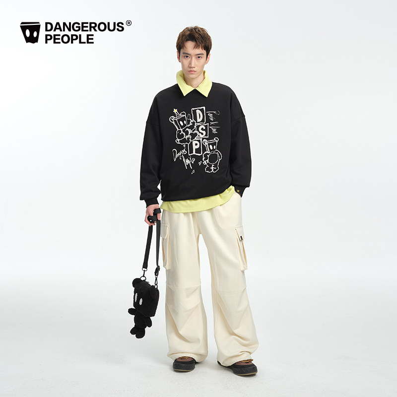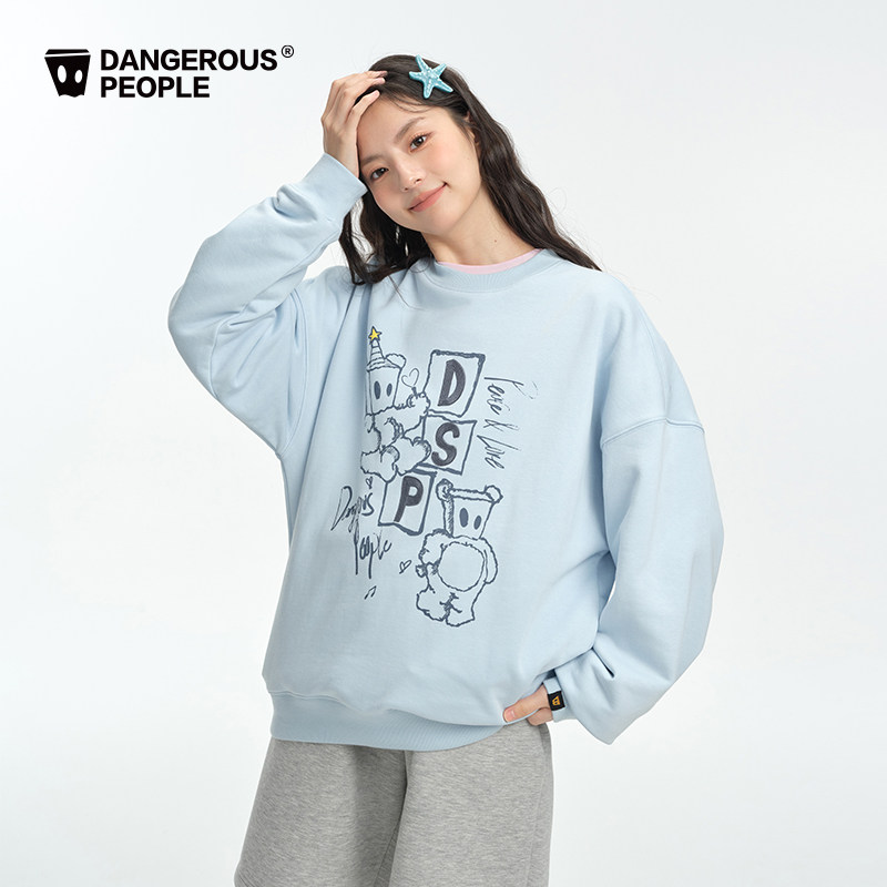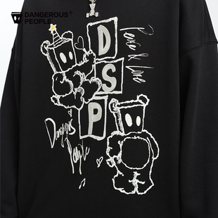 宽松百搭圆领卫衣 时尚 Dangerouspeople薛之谦dsp潮酷链式 绣花春季