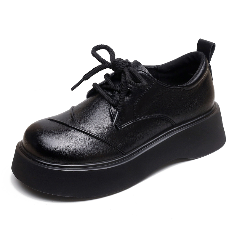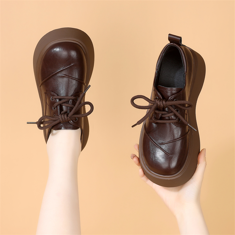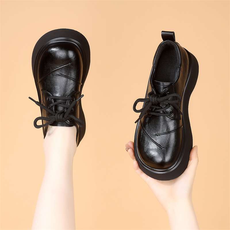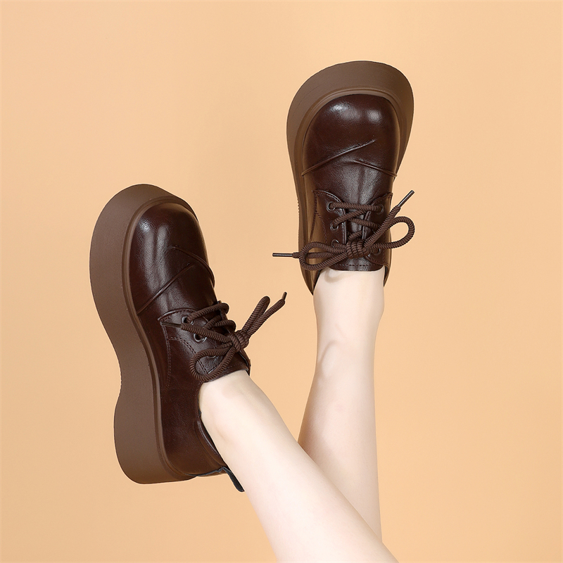 女2025年早春季 软底增高系带单鞋 新款 皮鞋 洋气百搭韩版 厚底乐福鞋