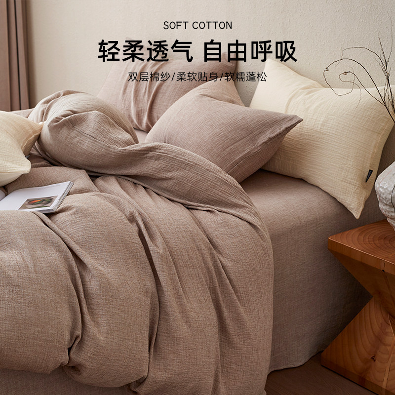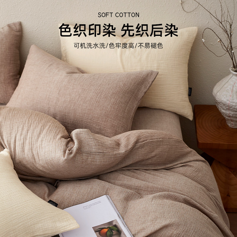 造卧zwow 全棉100纯棉纯色多巴胺美拉德双针单品被套集 空气感