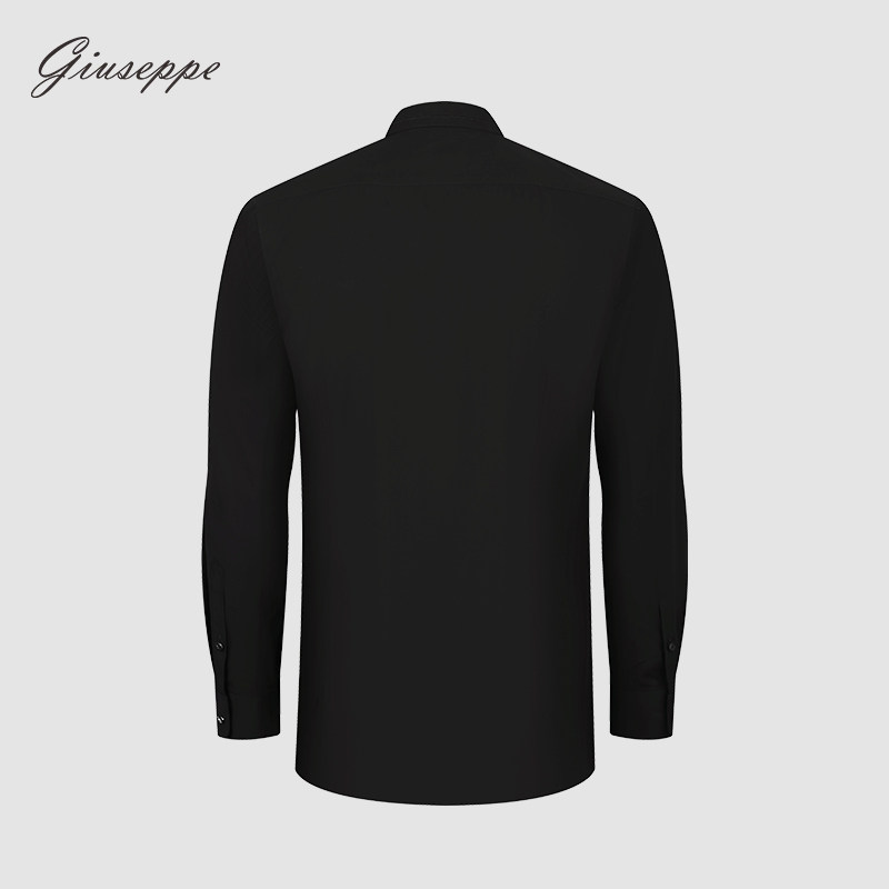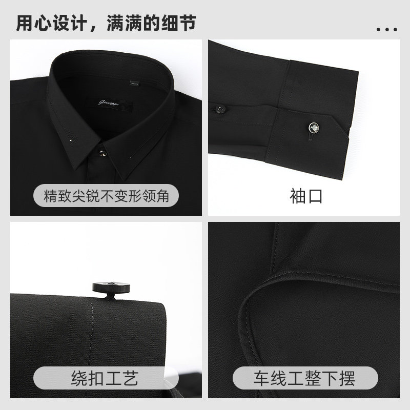 商务休闲黑色微弹纯色衬衣修身 衬衫 尖领上衣 长袖 乔治白春秋男士