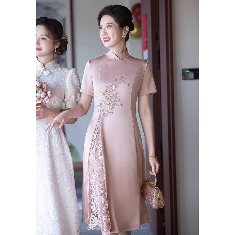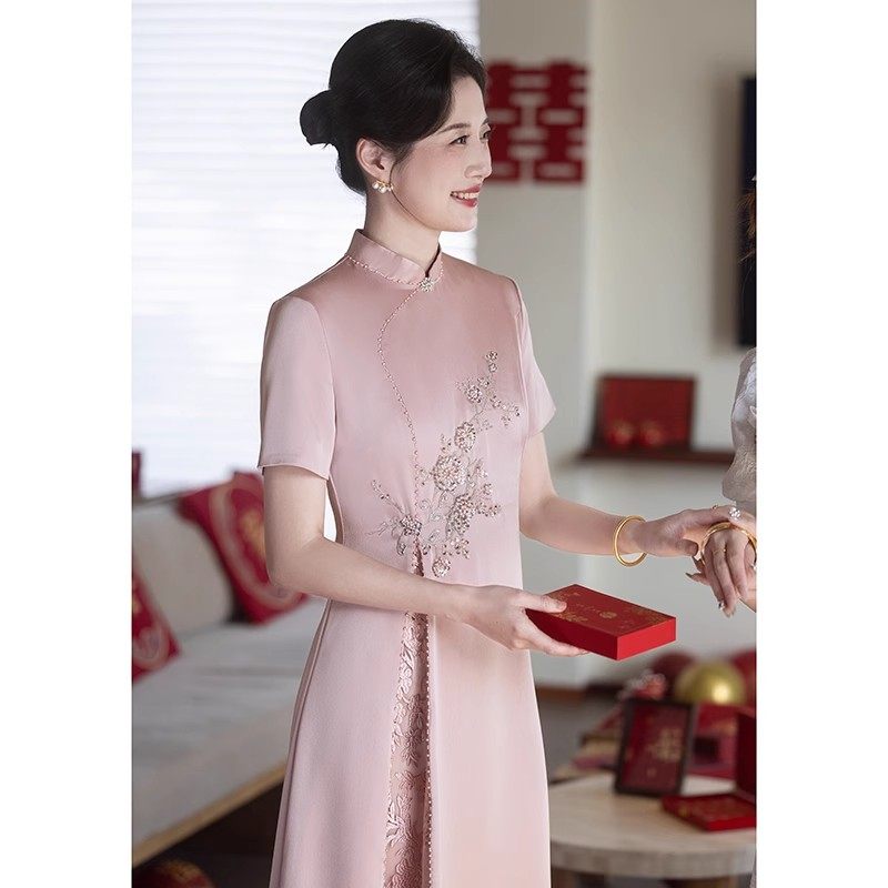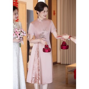 粉色喜妈妈婚宴礼服日常可穿优雅气质新娘订婚丈母娘旗袍裙高级感