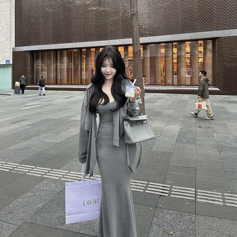 CHANGE清冷高级感不规则开衫 MISS 吊带鱼尾裙套装 人均卡戴珊