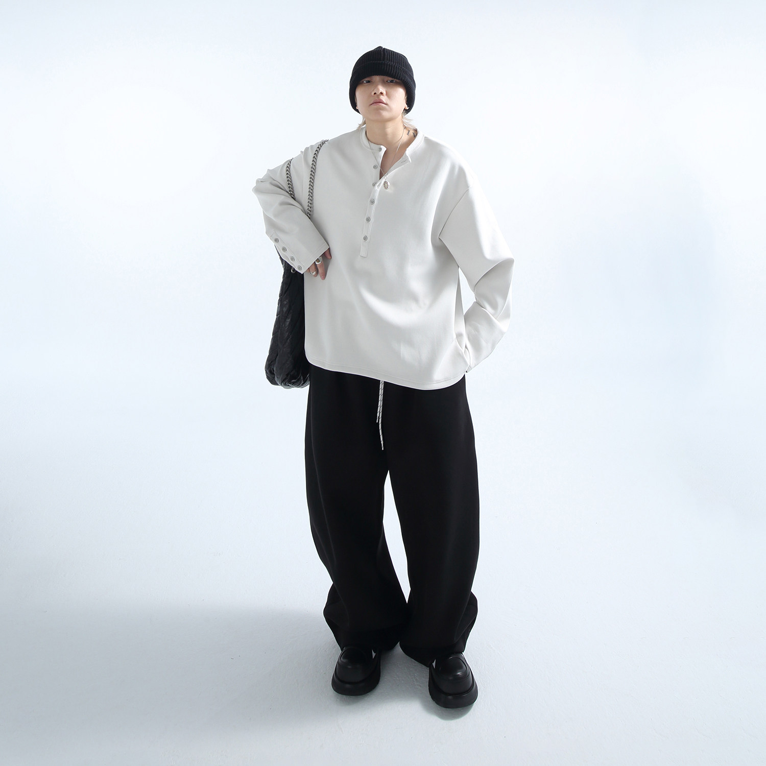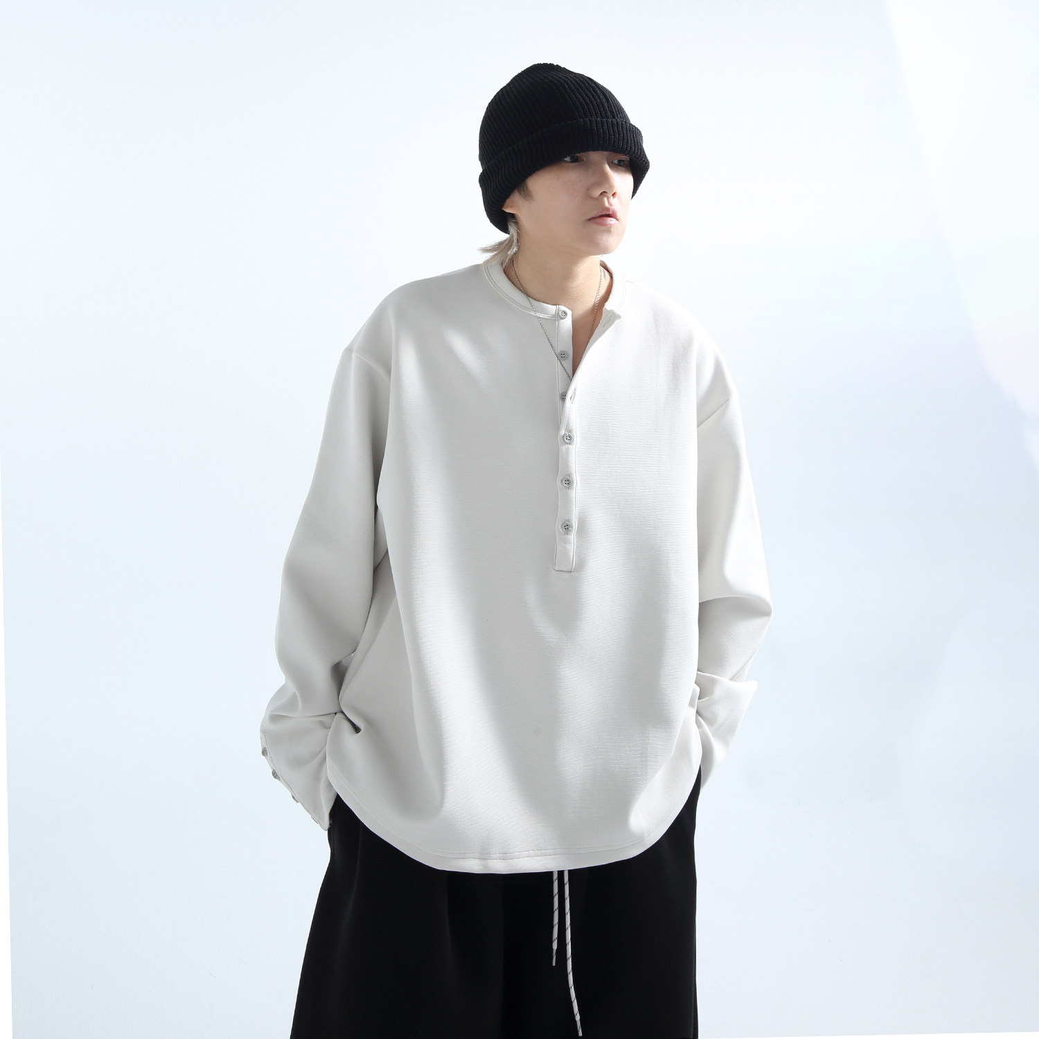 「GRNL」触肤柔滑细腻珠地多扣亨利圆领男女长袖 TEE