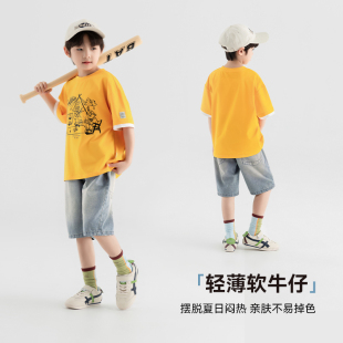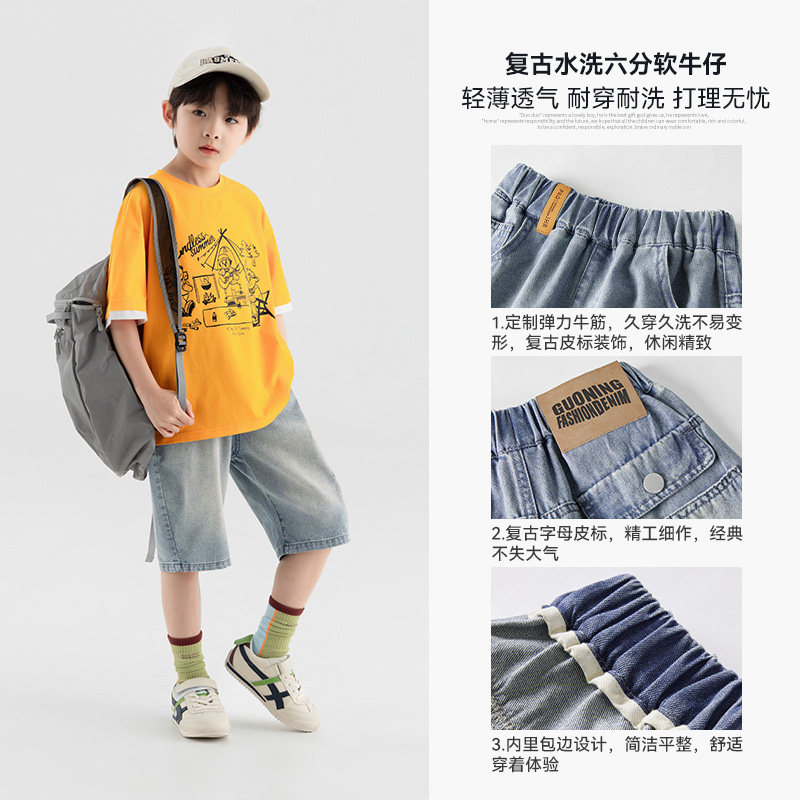 2025新款 男孩百搭薄裤 夏款 中裤 子 儿童水洗6分裤 多多家男童牛仔裤