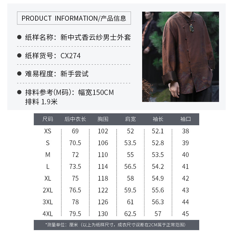 外套裁剪图缝纫做衣服样板 香云纱男士 CX274 新中式 沪小鹿纸样