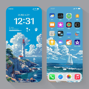 6张治愈风景插画壁纸iphone苹果安卓手机ipad平板电脑壁纸素材图