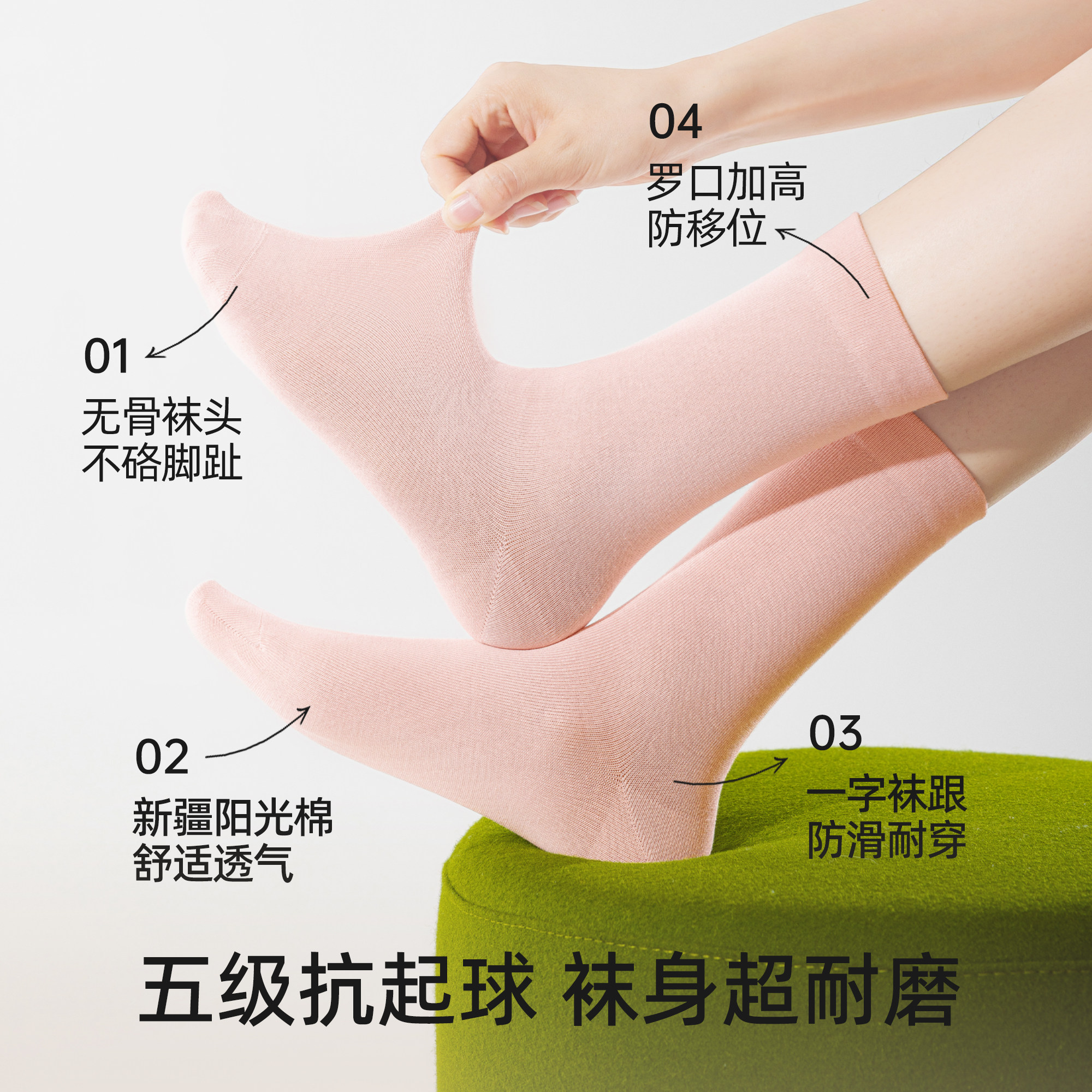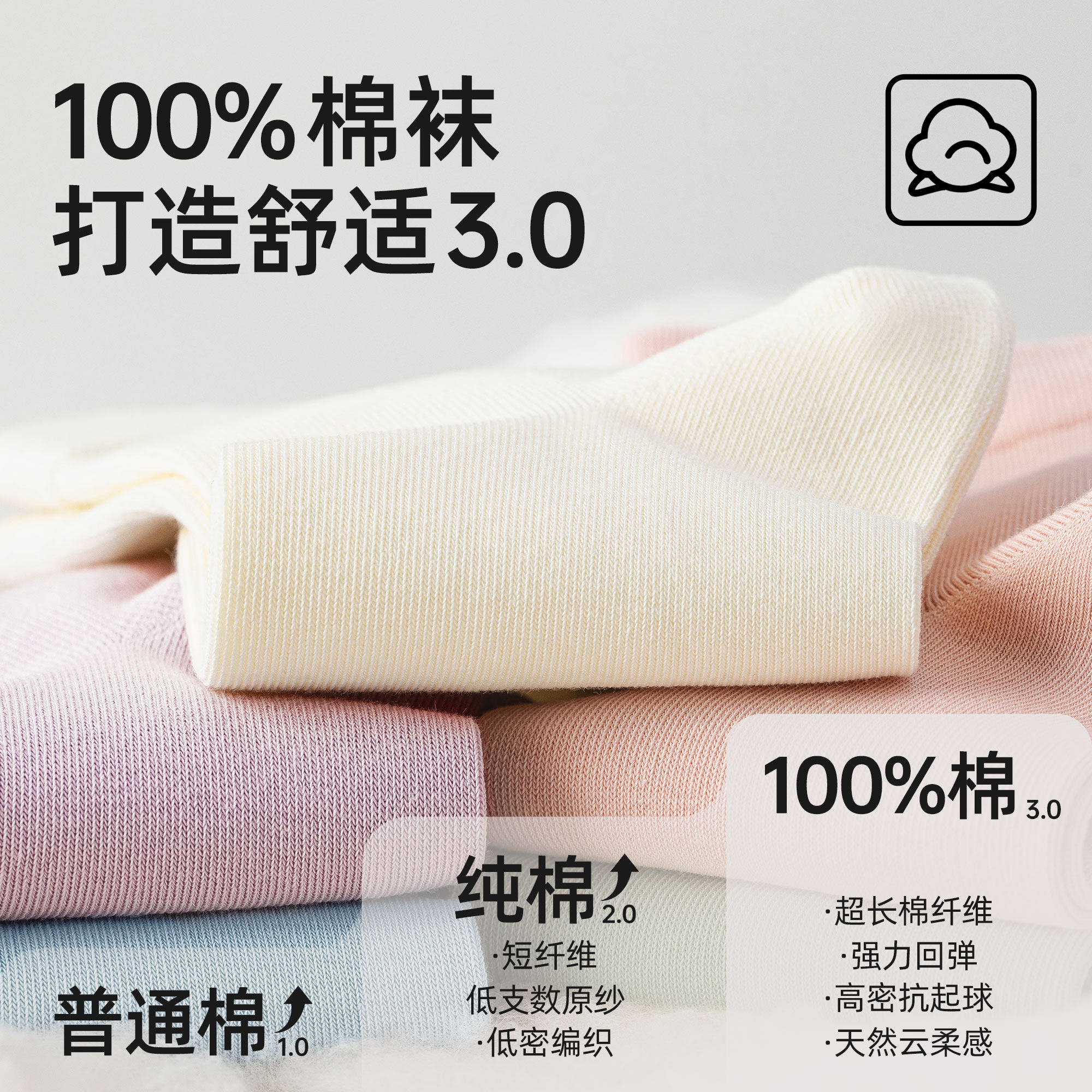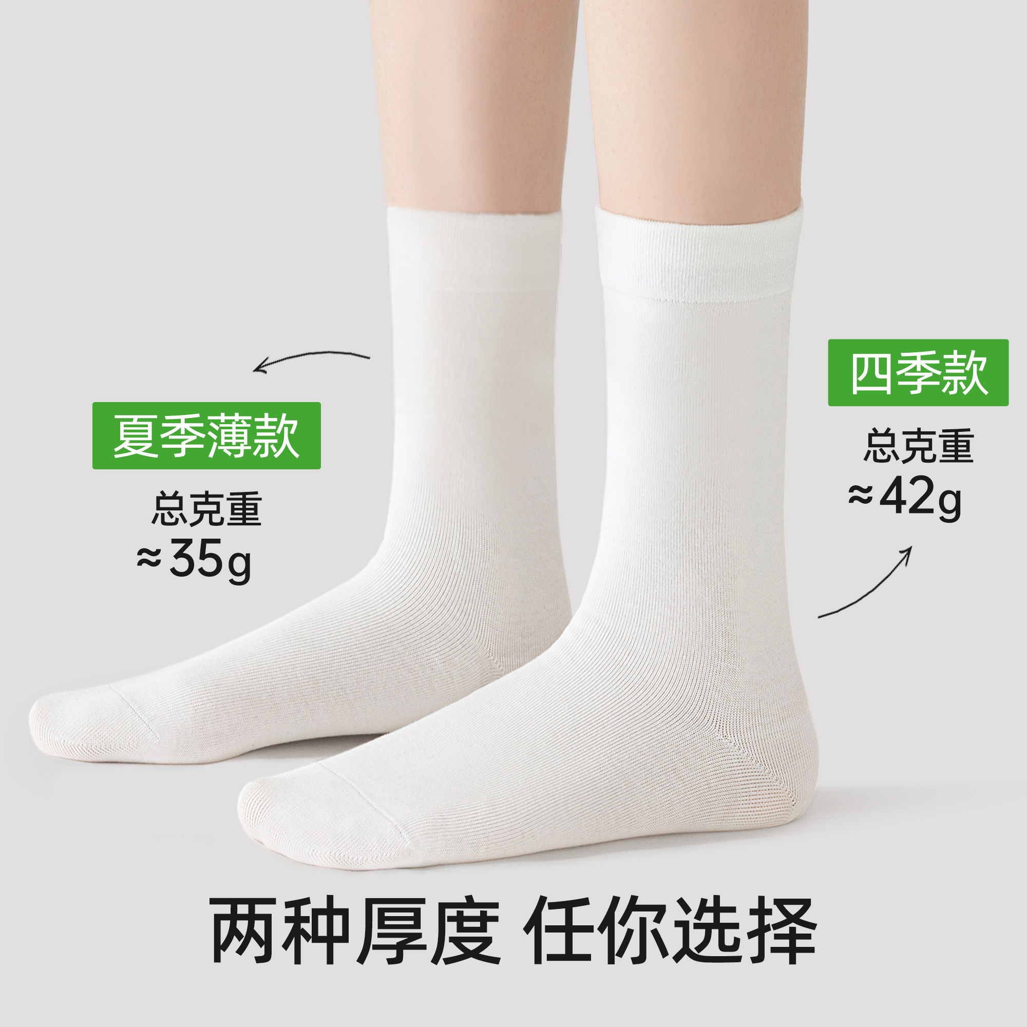 100%全棉纯棉袜子女10A抑菌防臭无骨中筒夏薄款 月子白色堆堆长袜