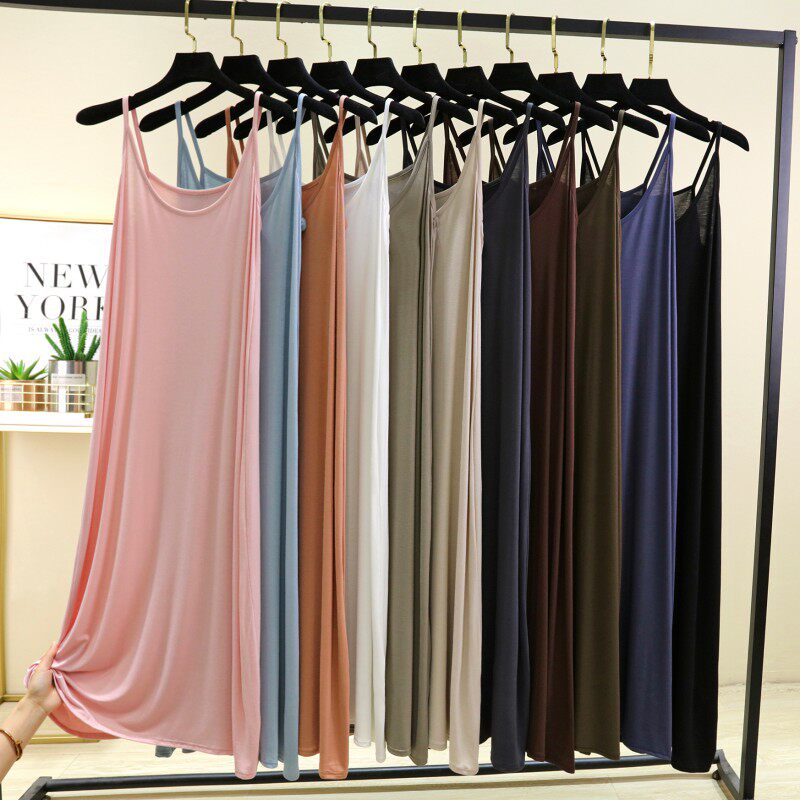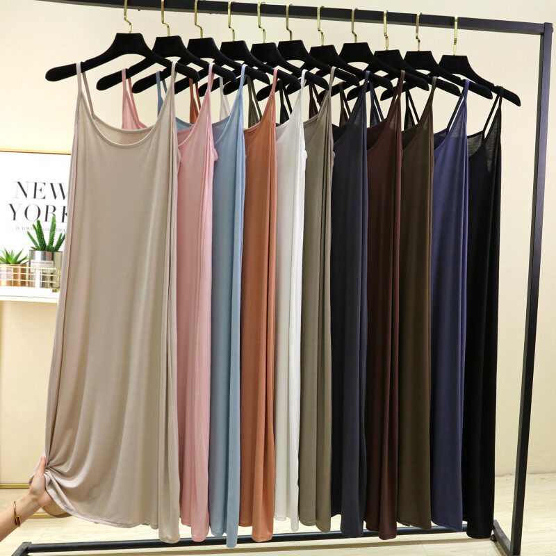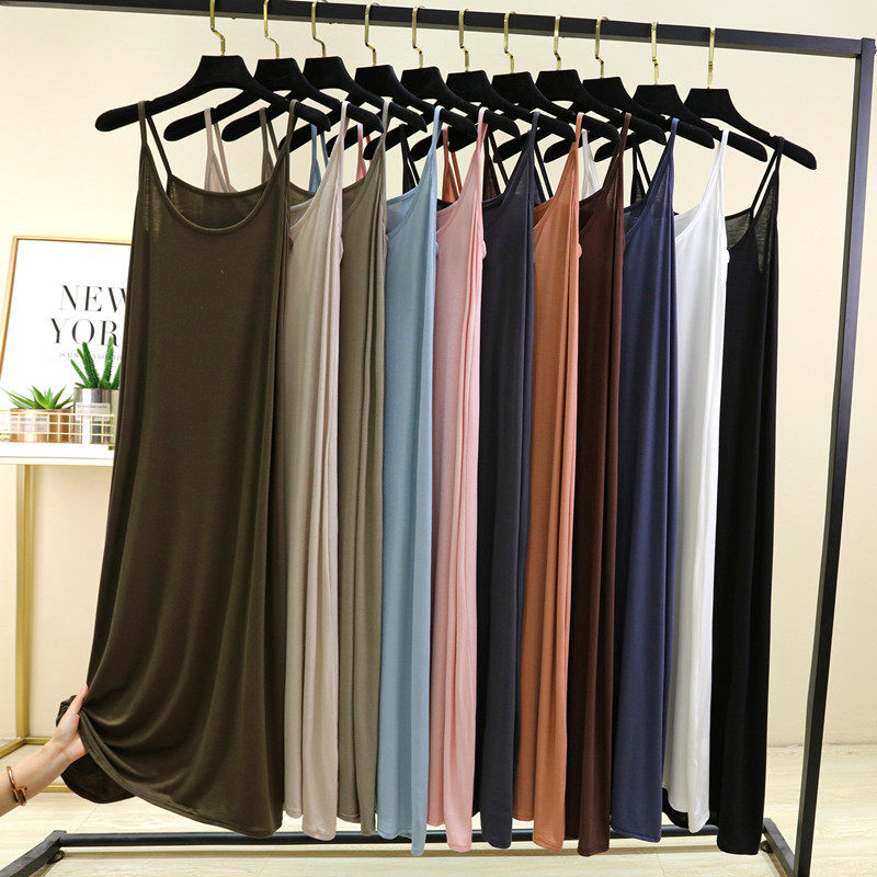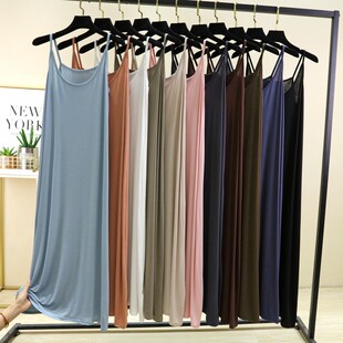 夏季 长裙莫代尔背心吊带裙宽松打底裙内搭a字裙 圆领连衣裙女薄款