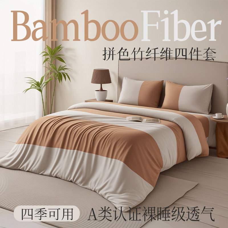 竹纤维清爽四件套三件套100%BAMBOO裸睡抗菌床笠舒适夏季 A类60支