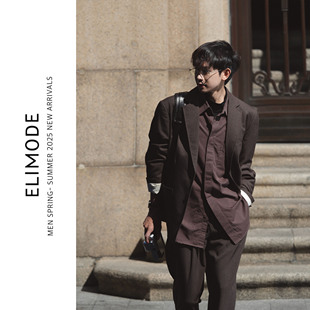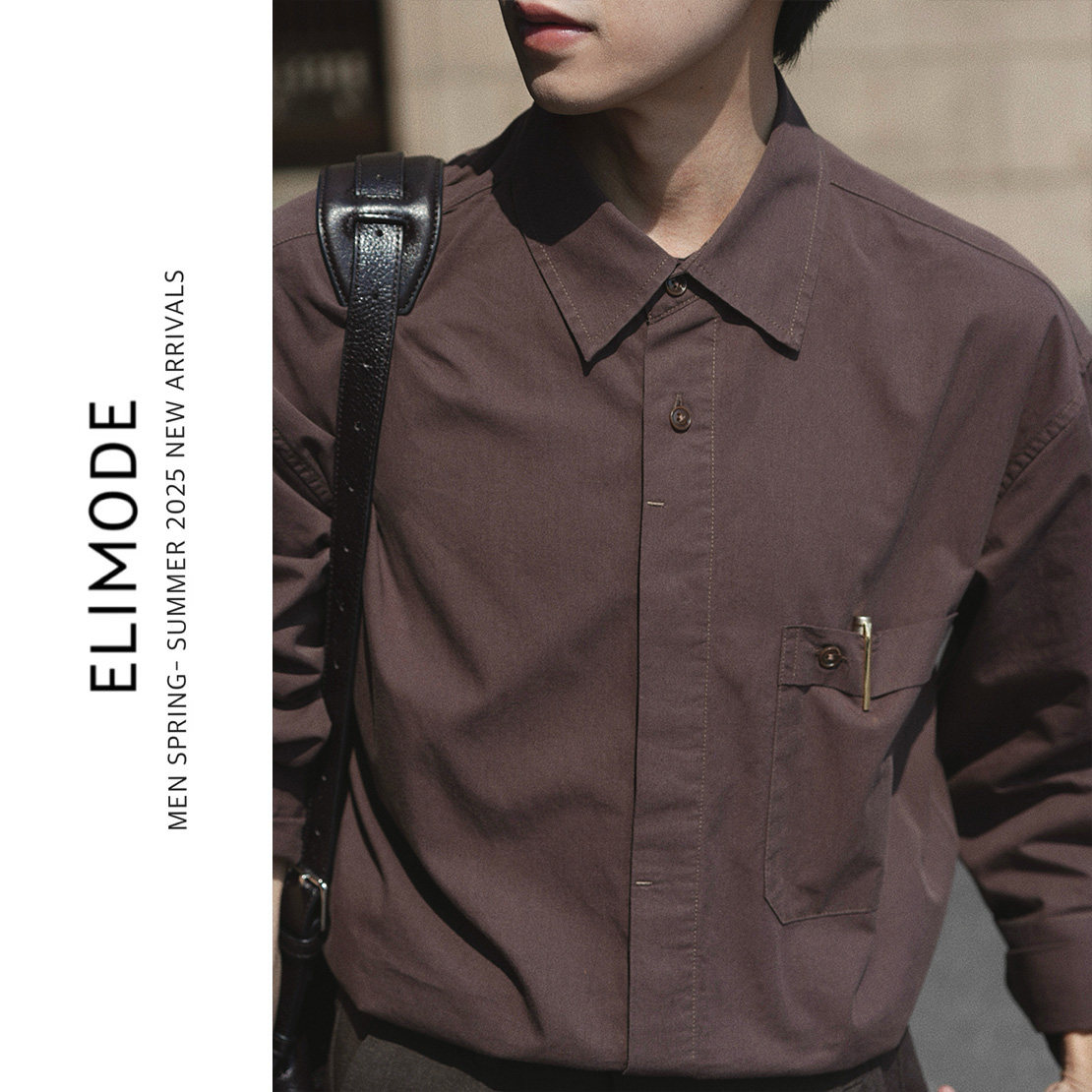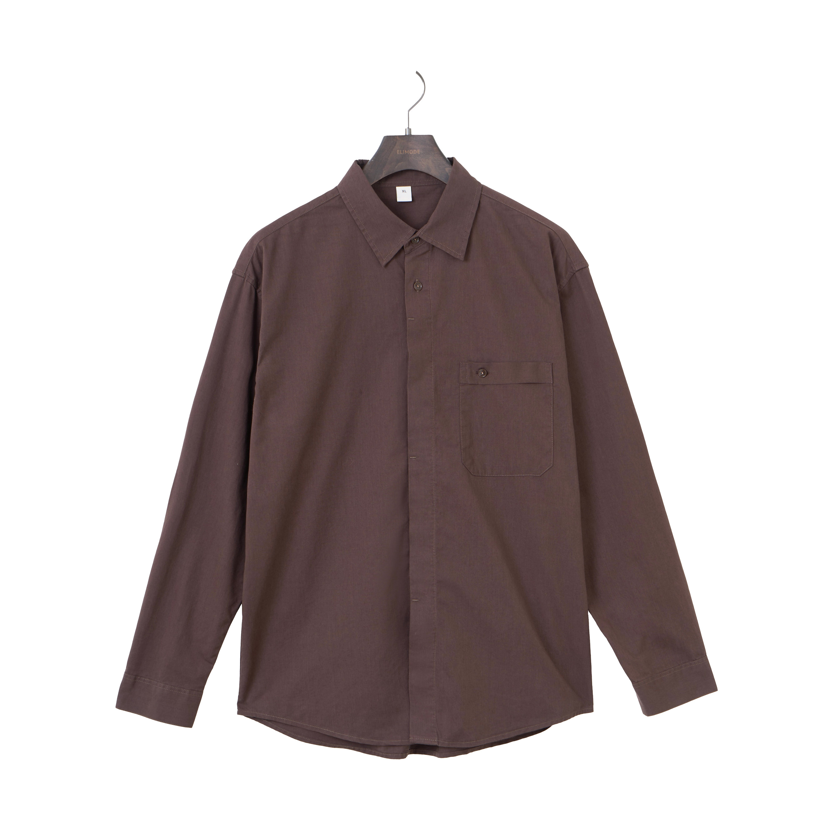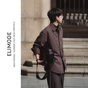 休闲长袖 天丝混棉翻领贴袋饰纯色复古垂感衬衫 衬衣男 红栎 ELI