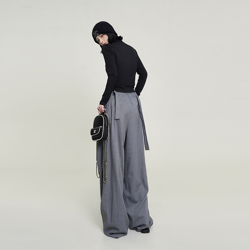 韩系高级感高腰显瘦拖地长裤 女夏季 裤 吴童童垂感宽松直筒休闲西装