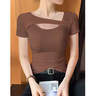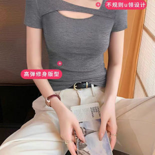 大码 夏季 胖mm正肩显瘦打底衫 修身 上衣 黑色短袖 半袖 T恤女2025新款