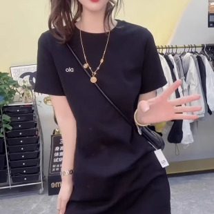 遮臀显瘦打底衫 欧货圆领短袖 新款 T恤女夏季 简约黑上衣t 纯棉中长款