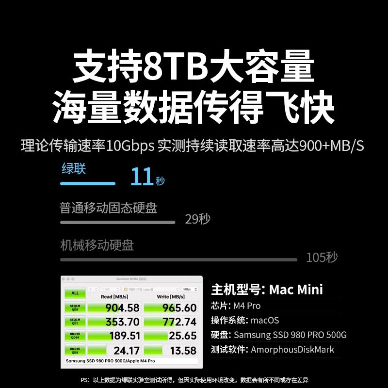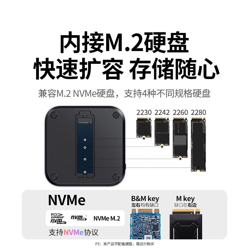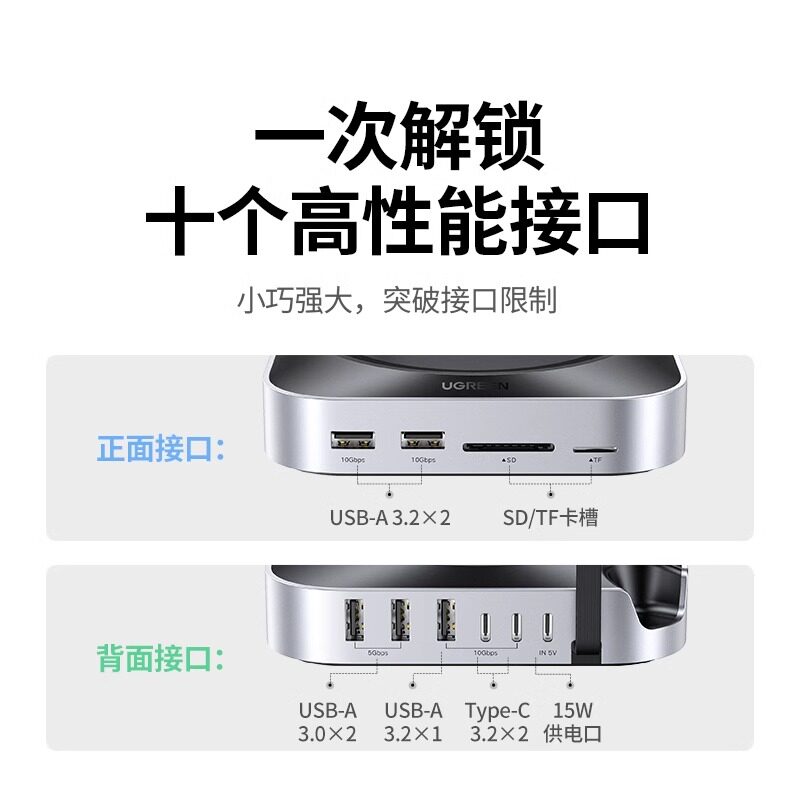 绿联适用Macmini mini桌面底座支架 M4Pro拓展坞typec转M.2硬盘盒扩容8T内存扩展USB传输10Gbps读卡多接口Mac
